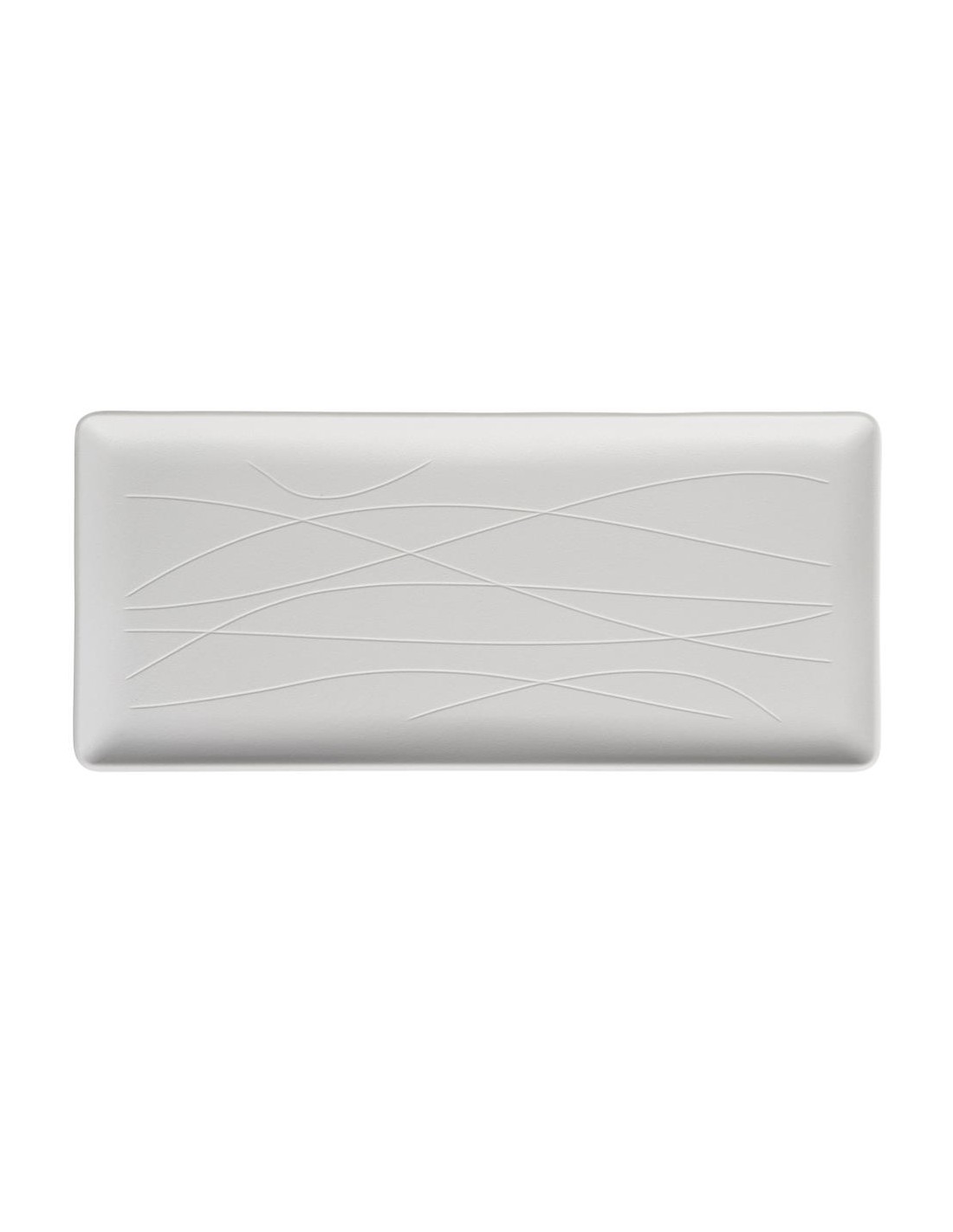 Piatto portata rettangolare in silk porcelain bianco brillante, con decoro inciso.