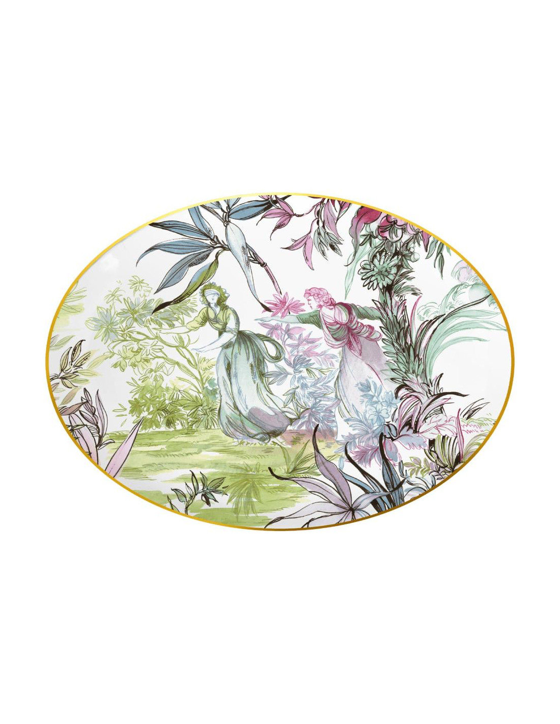 Piatto Ovale in porcellana decorata e rifiniture in oro.