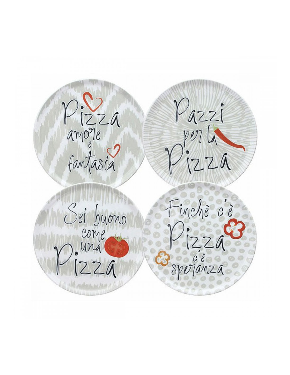 Il set 4 piatti pizza rotondo della linea Cinzia ha un diametro di 33 cm.