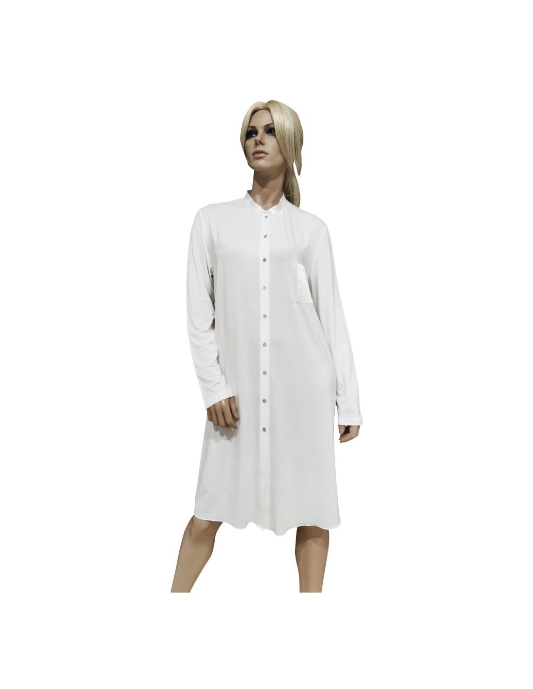 Camicia da notte Donna aperto in tessuto modal, collo alla coreana,