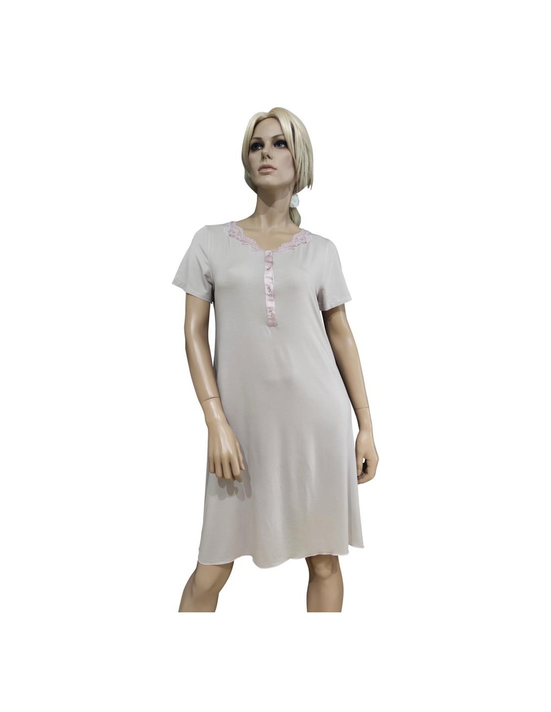 CAMICIA DA NOTTE DONNA ESTIVA IN TESSUTO MICROMODAL E PIZZO
