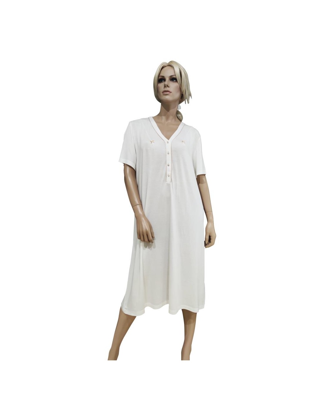 Camicia da notte Donna in tessuto micromodal, collo a