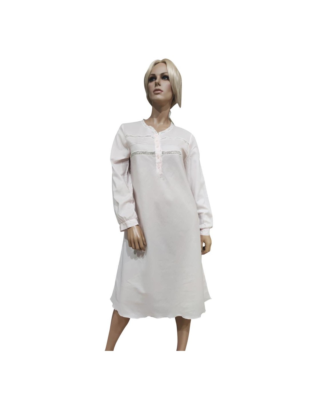 Camicia da notte Donna invernale in caldo Cotone Battista, collo a