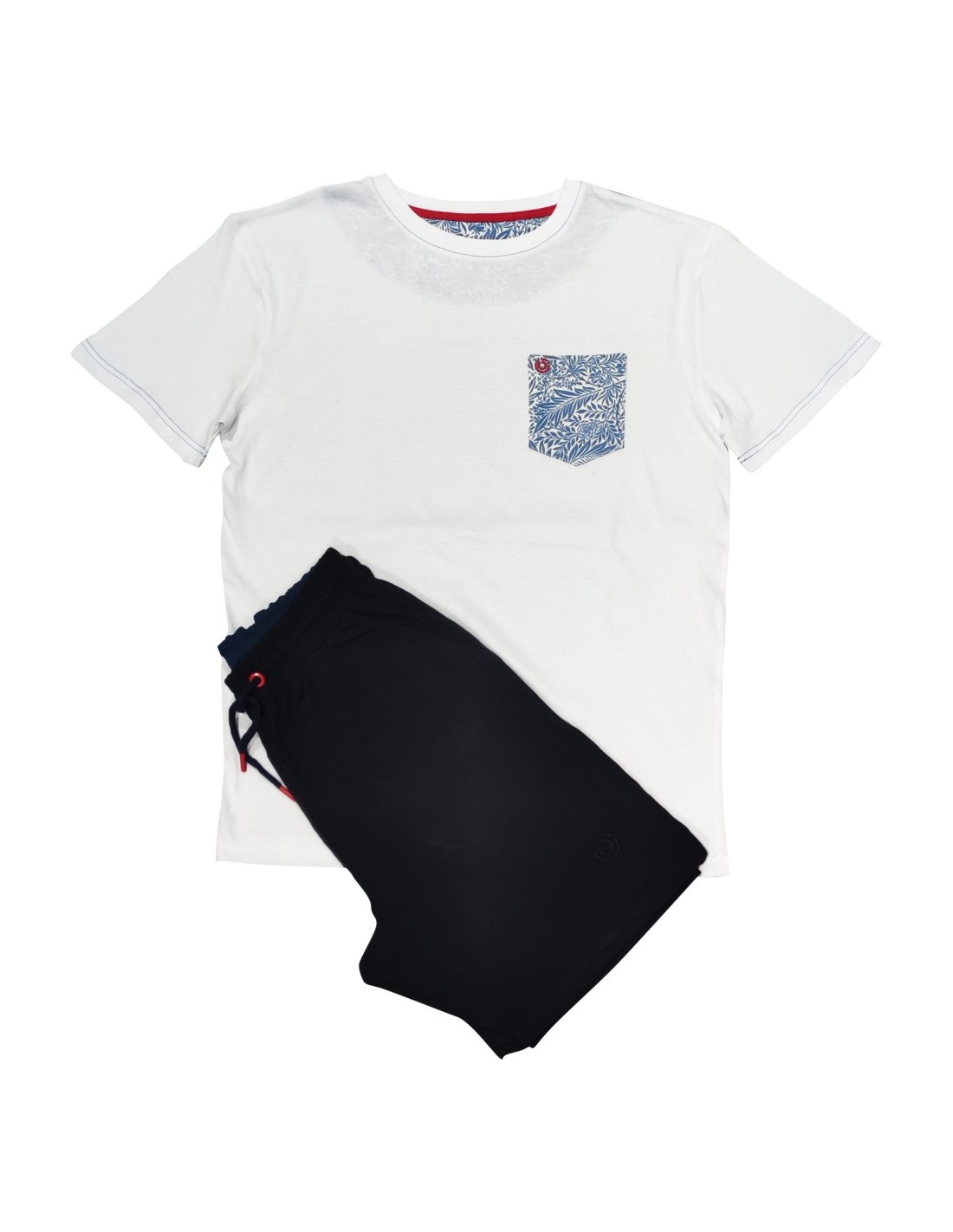 girocollo con taschino e maniche corte. Pantalone corto con tasche