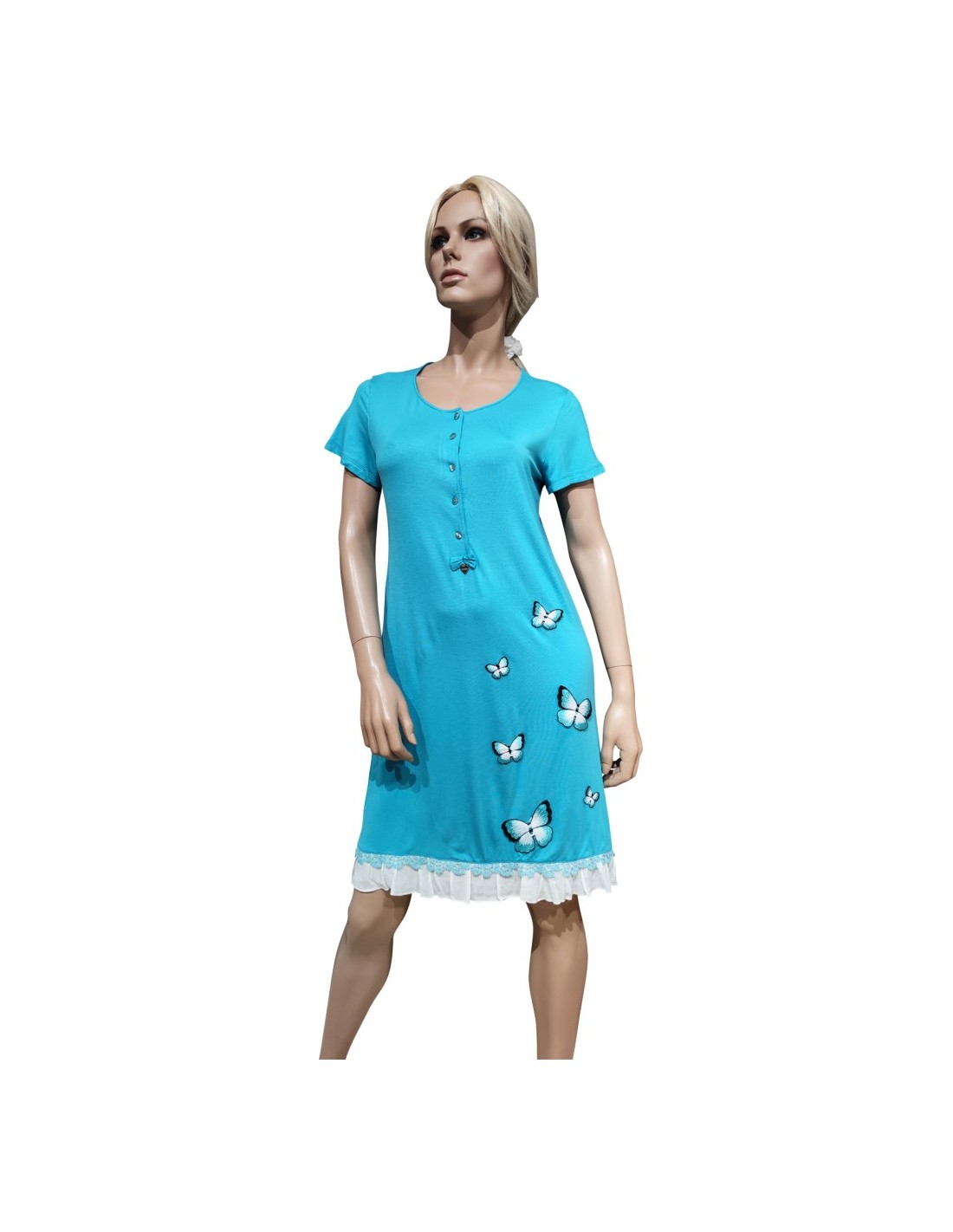 Camicia da notte Donna estiva in Viscosa rifinita con pizzo, collo a