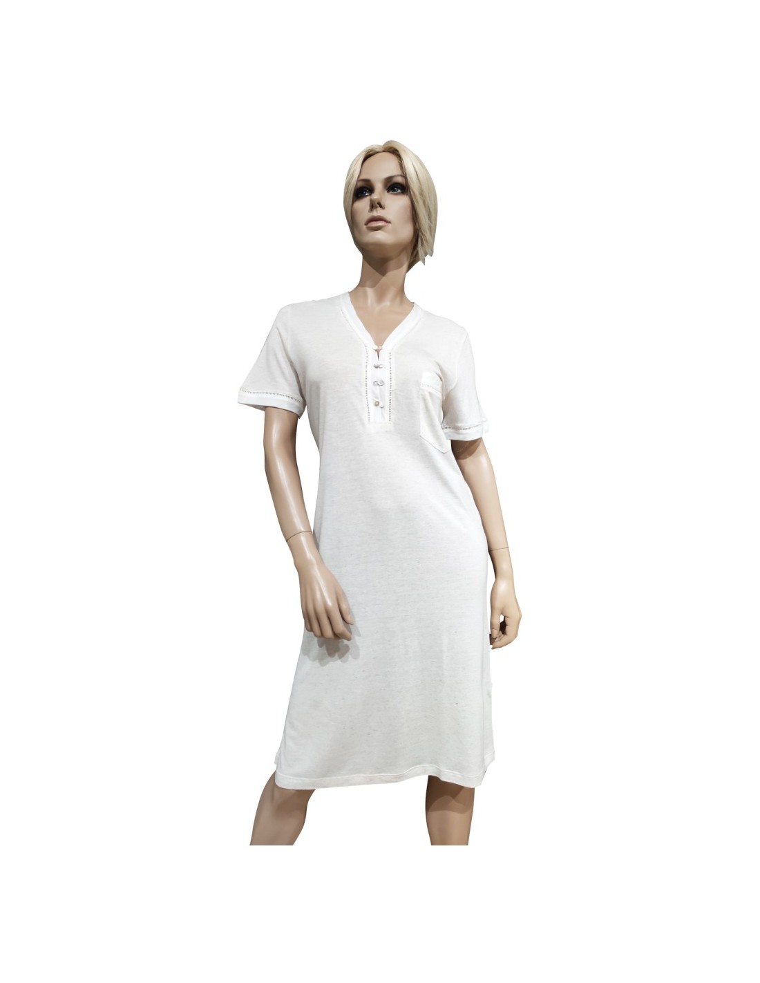 Camicia da notte Donna estiva in viscosa, collo a serafino 3 bottoni con taschino e maniche corte.