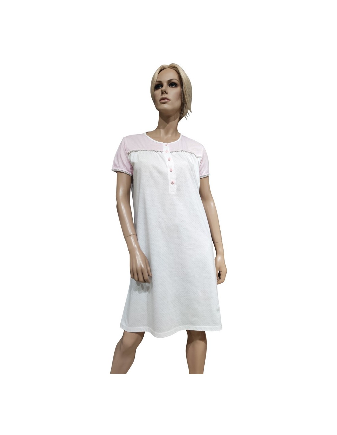 ROSA E MENTA CAMICIA DA NOTTE DONNA SERAFINO MEZZA MANICA IN COTONE