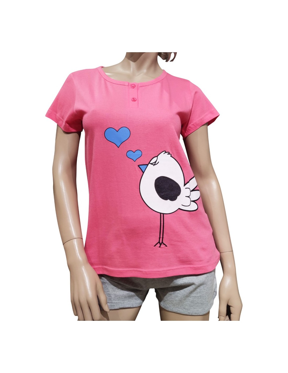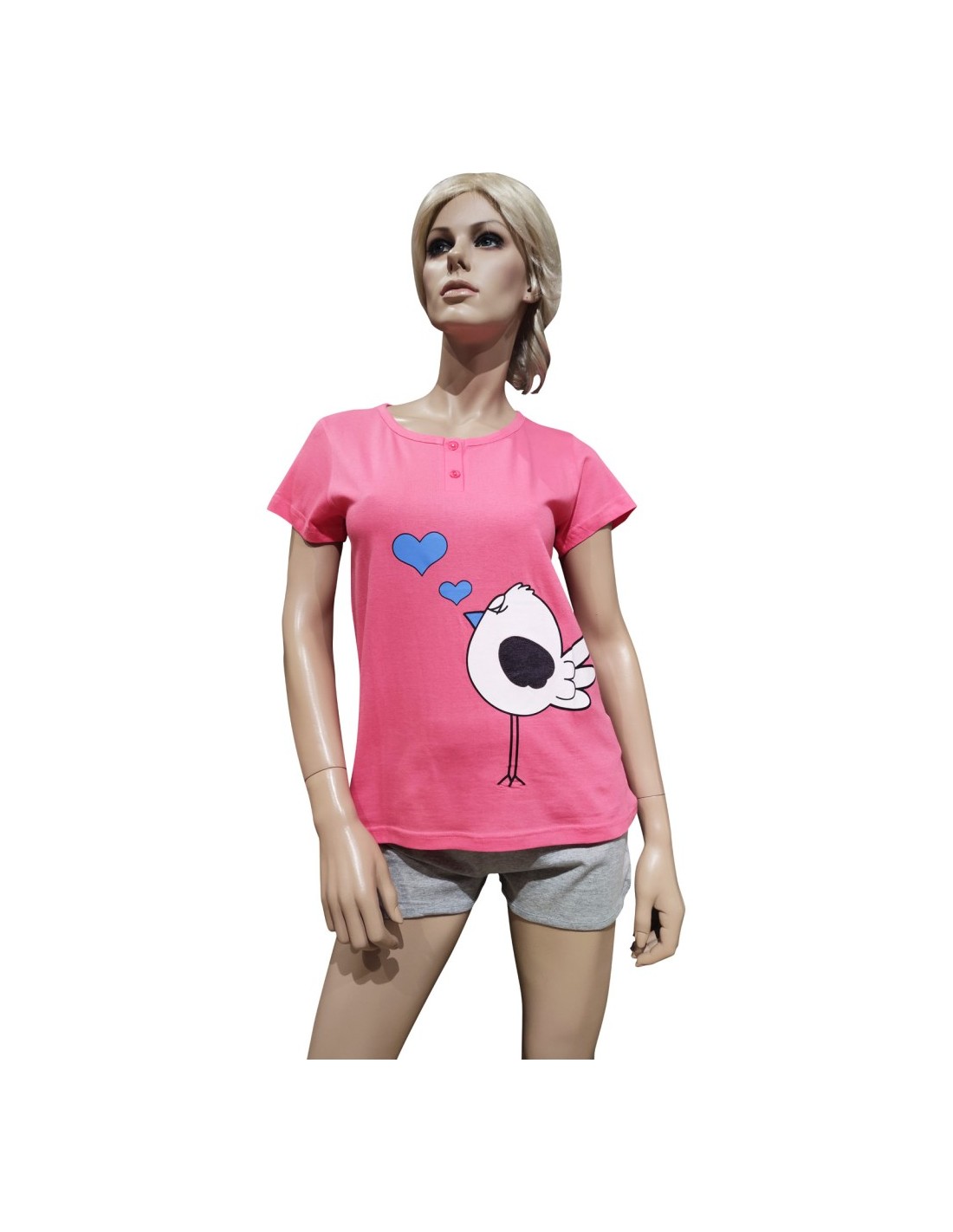 PIGIAMA DONNA ESTIVO GIROCOLLO MANICA CORTA E SHORTS 100% COTONE