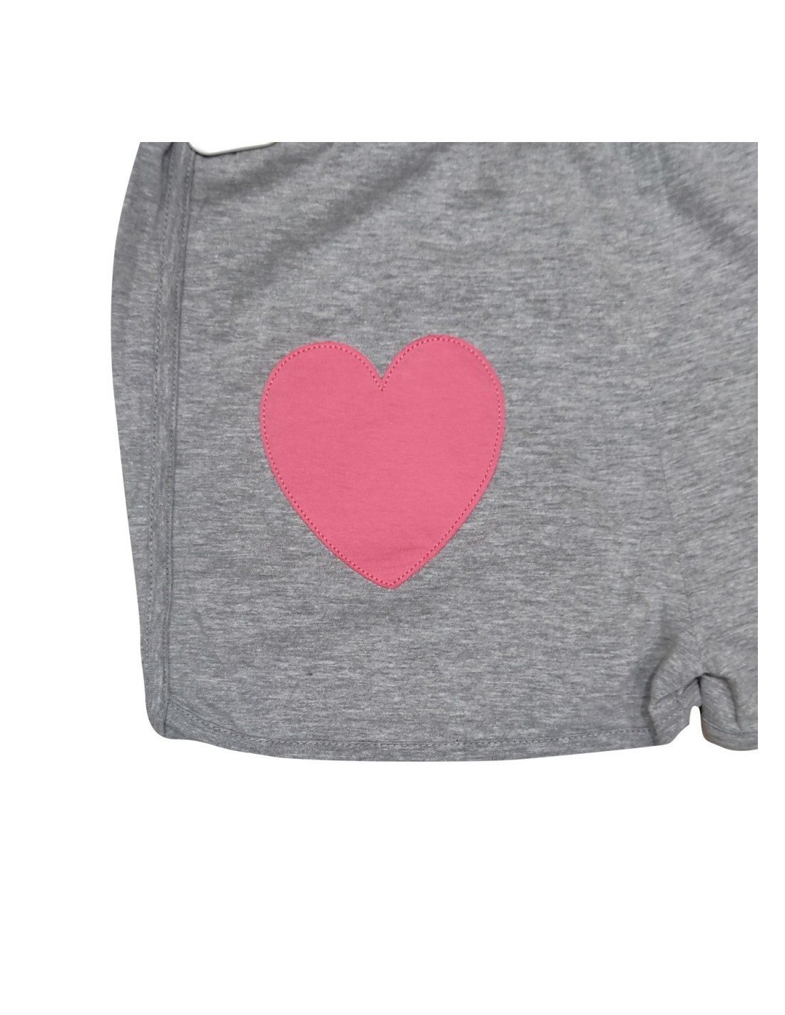 Top a girogola, mezza manica e pantalone corto rifinito con applicazione cuore.