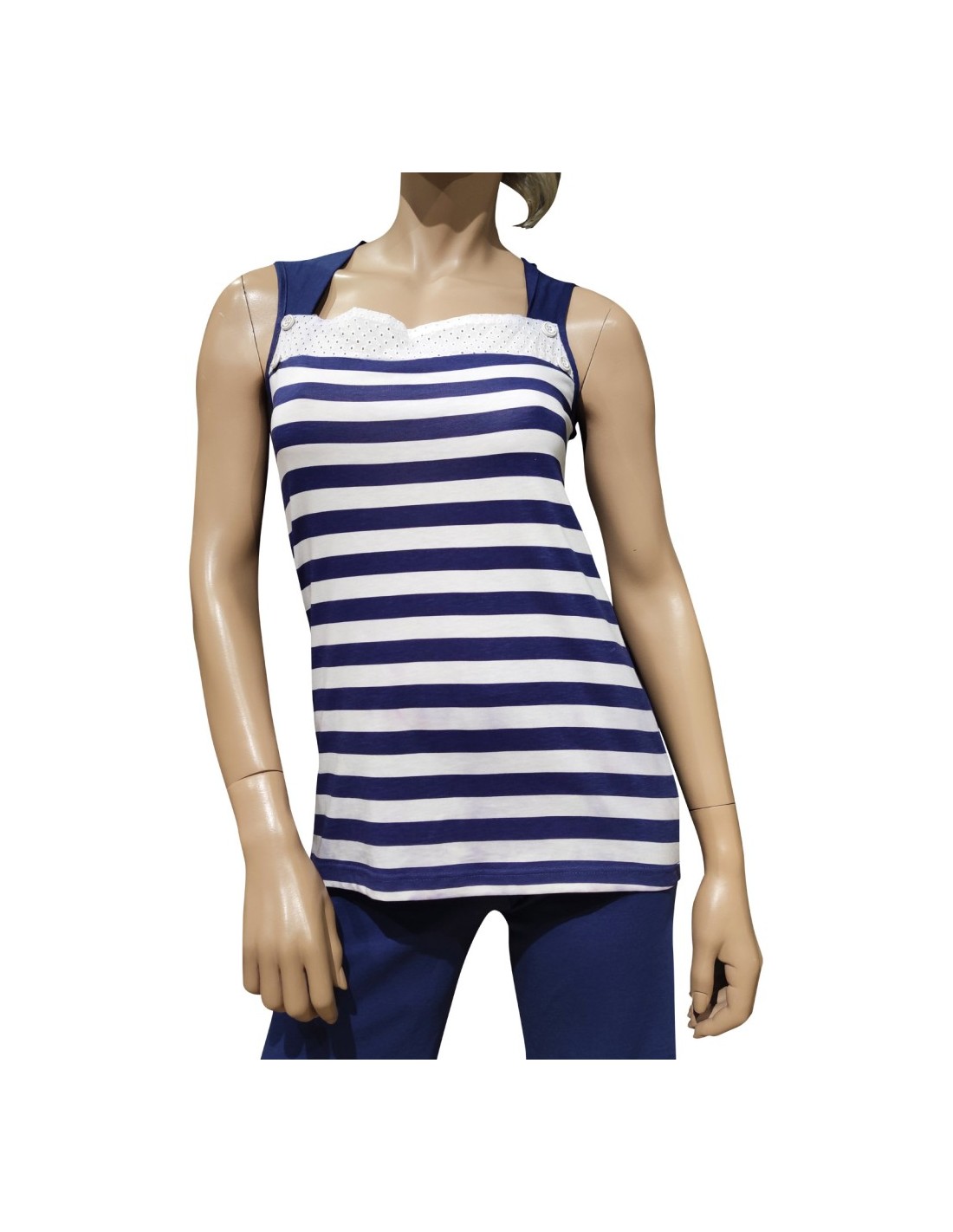 Pigiama da donna estivo in Cotone rifinito con pizzo sangallo.