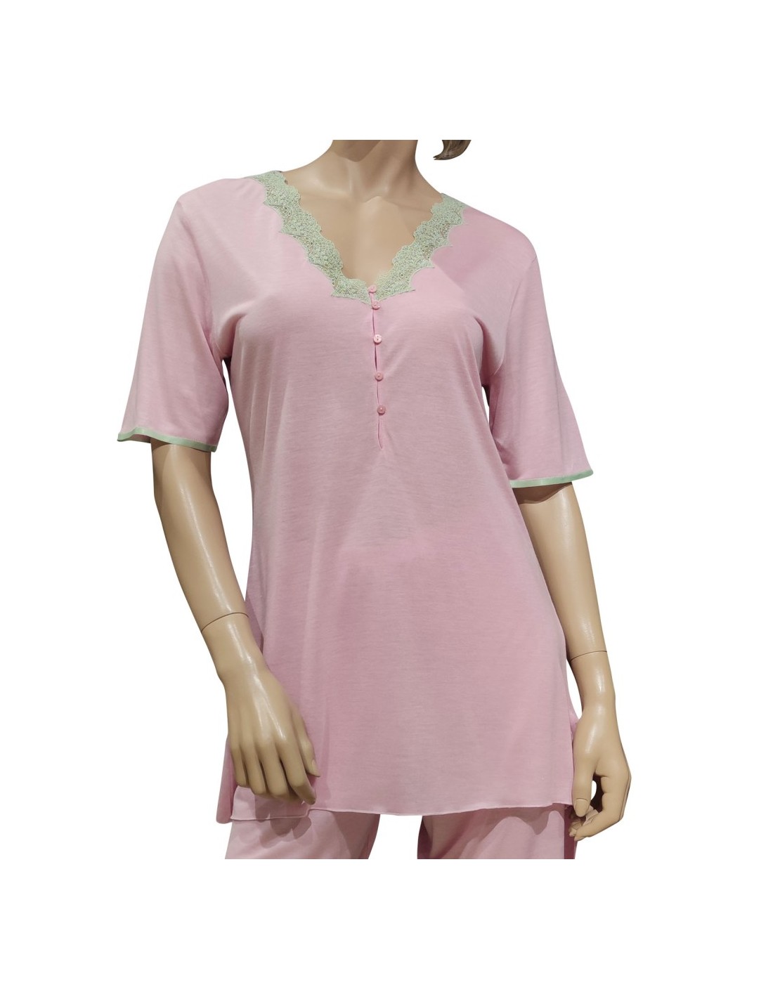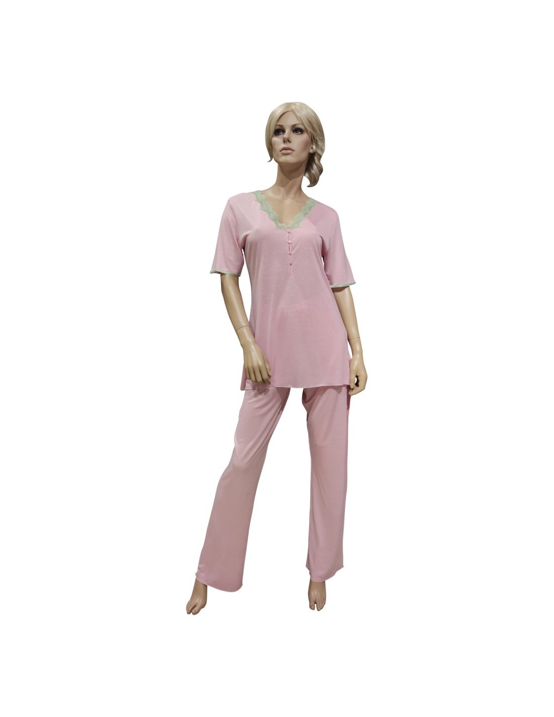 PIGIAMA DONNA ESTIVO A SERAFINO CON PIZZO, MANCIA CORTA E PANTALONE LUNGO