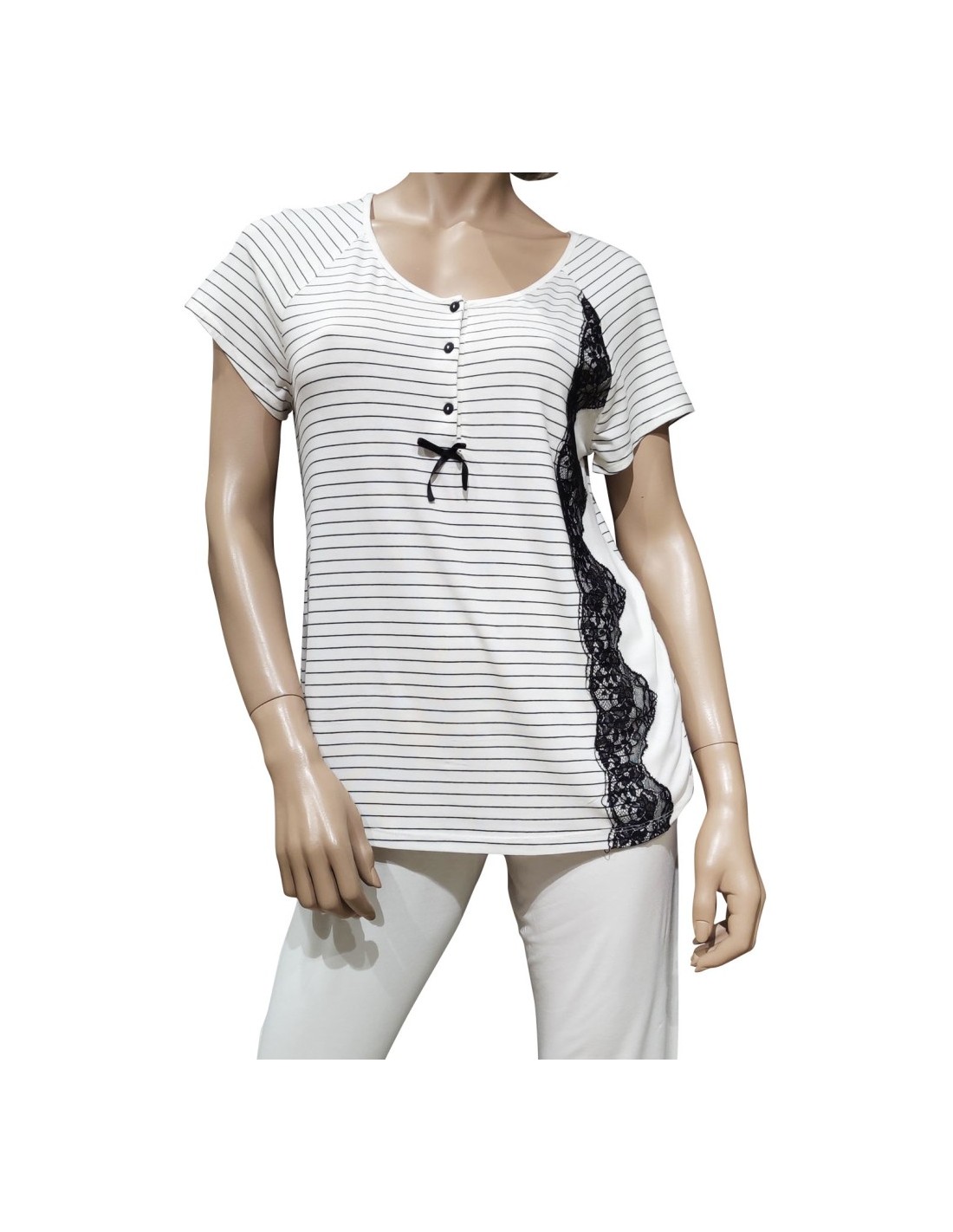 Pigiama donan estivo in viscosa rifinito con pizzo nero.