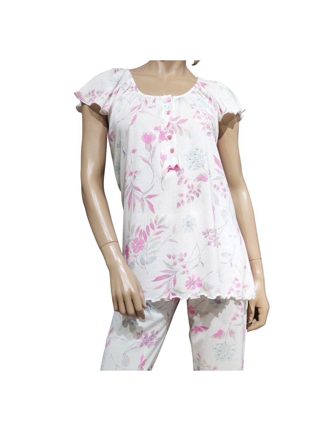 Pigiama donna estivo in Cotone Modal fantasia floreale.