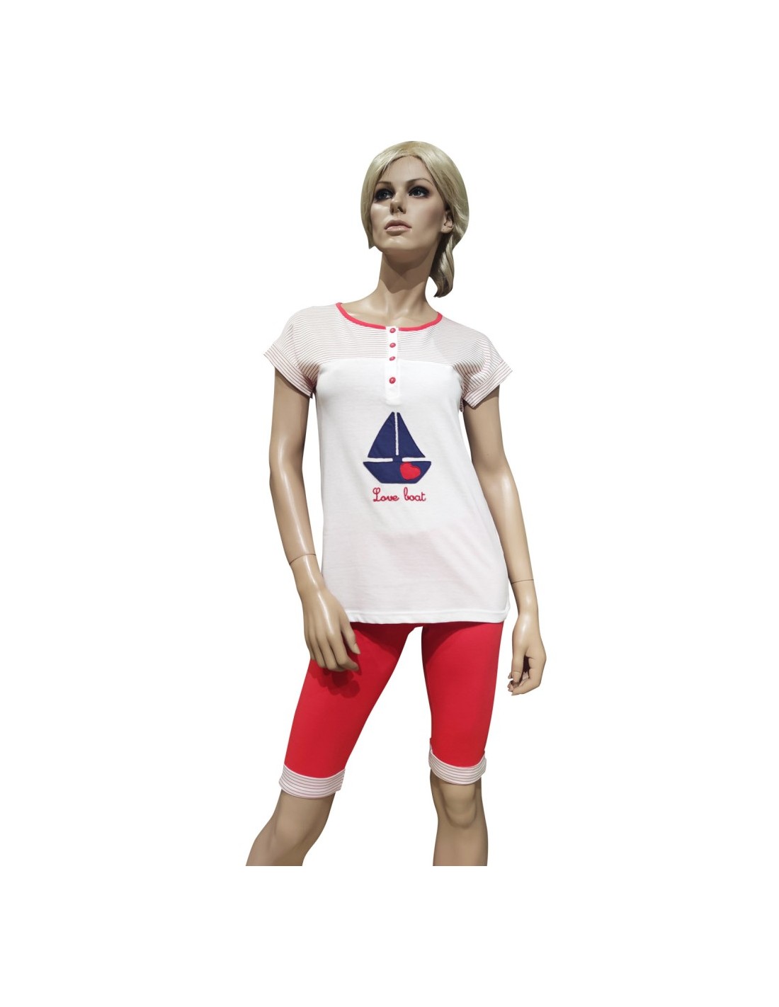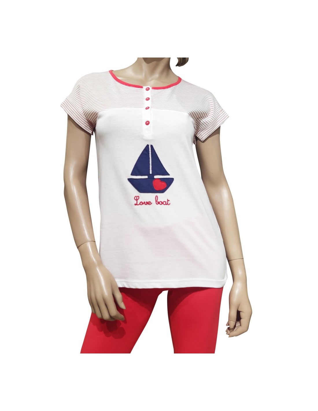 Pigiama donna estivo in puro cotone rifinito con barca apllicata.