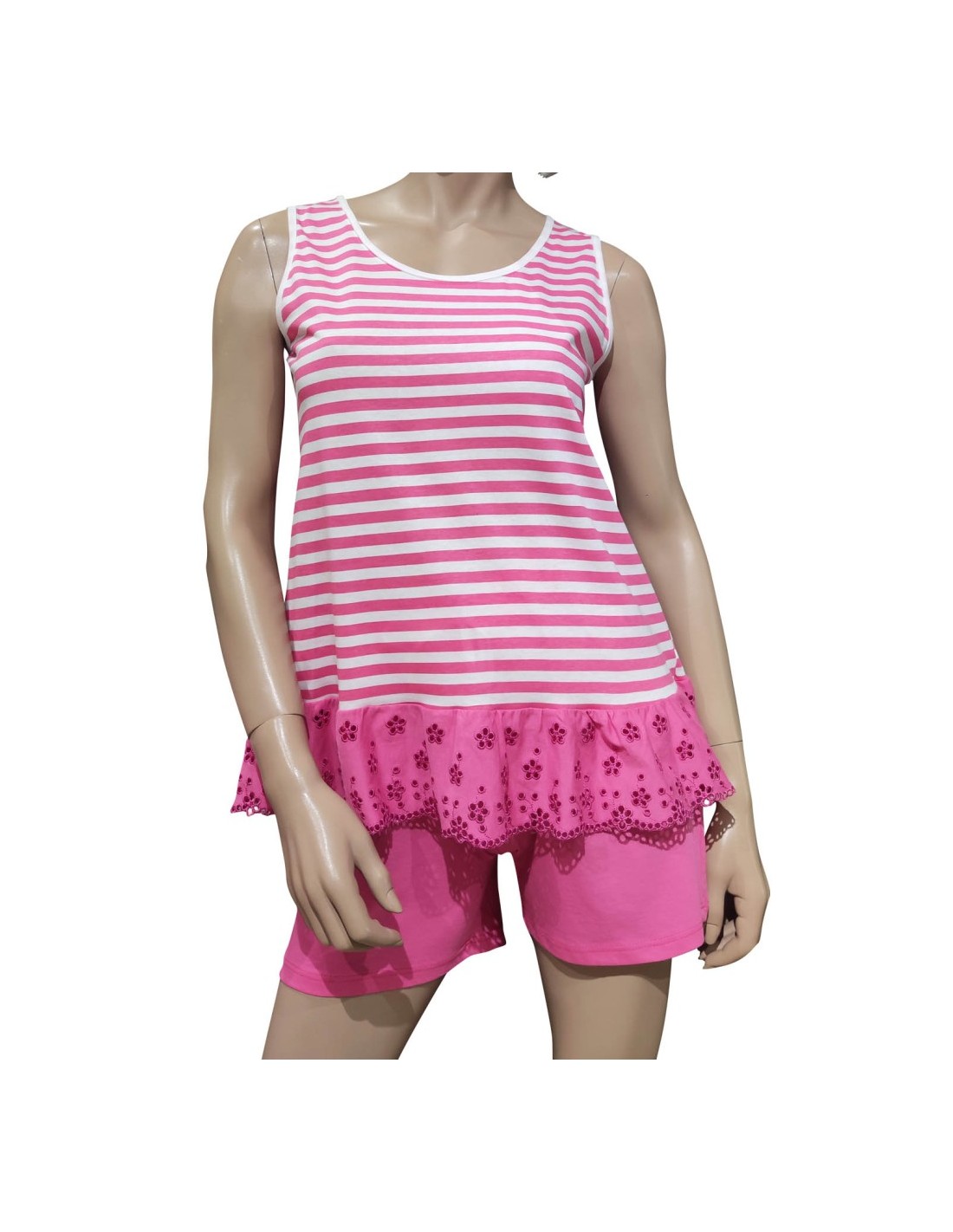 Pigiama donna estivo in Cotone Jersey fantasia a righe.