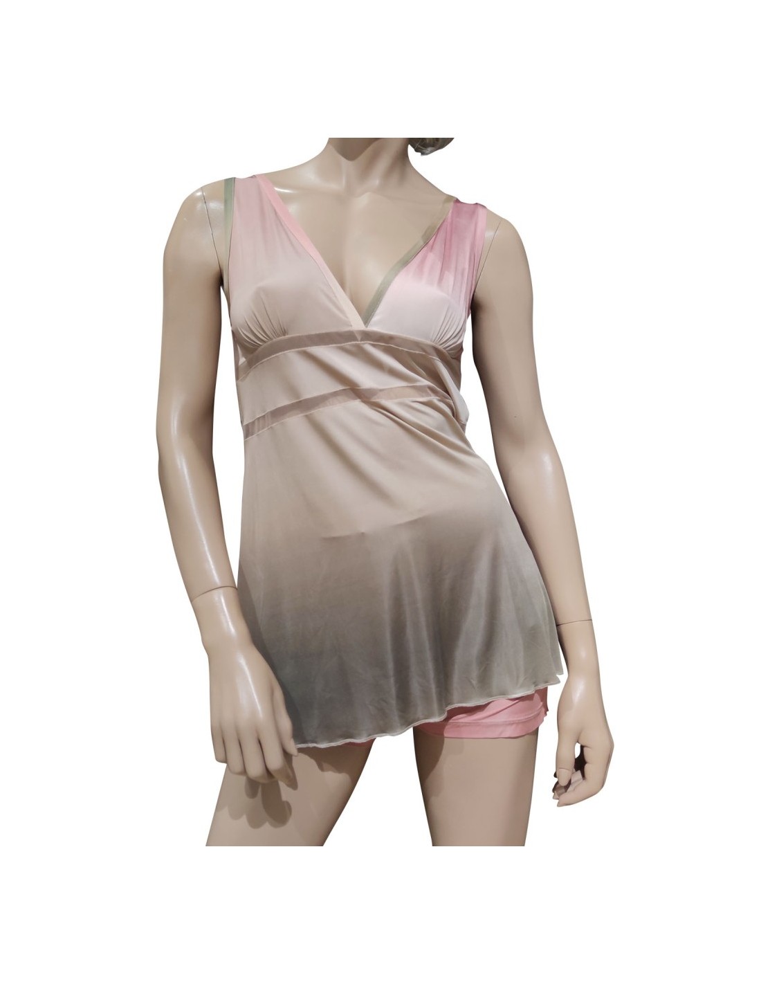 Pigiama donna estivo in Viscosa colore sfumato dal sabbia al rosa.