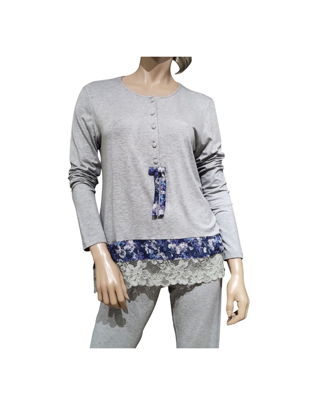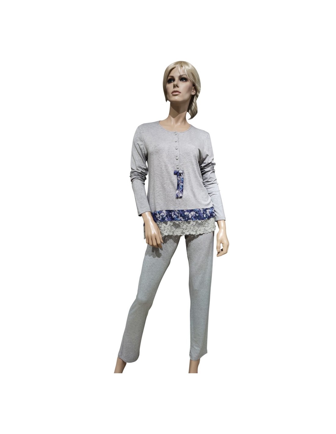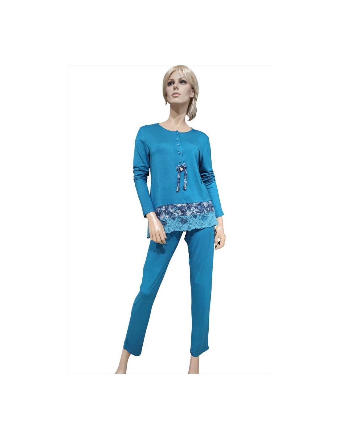 Pigiama donna primaverile in Viscosa rifinita con balza in pizzo.