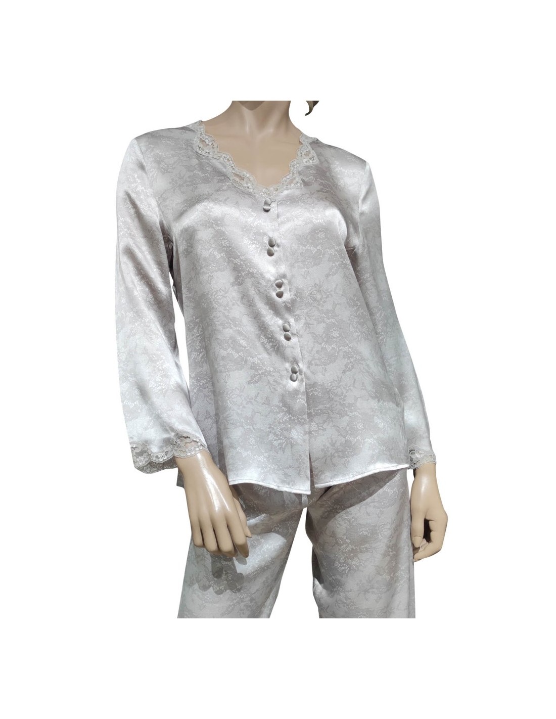 Pigiama donna primaverile in pura Seta rifinito con pizzo.