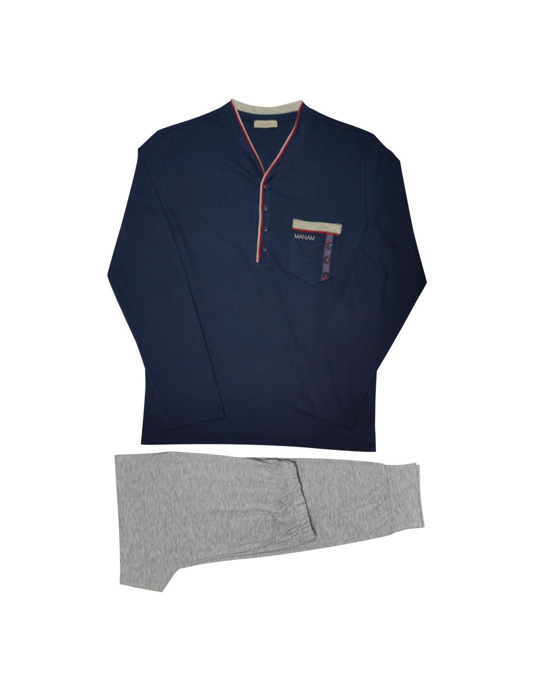Pigiama uomo primaverile in puro Cotone Jersey. Maglia scollo a V,