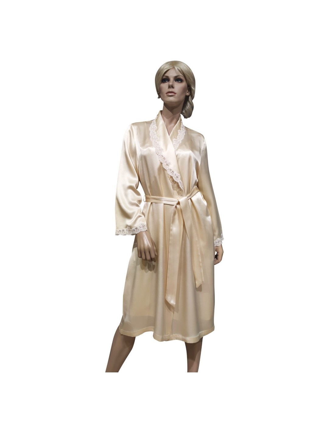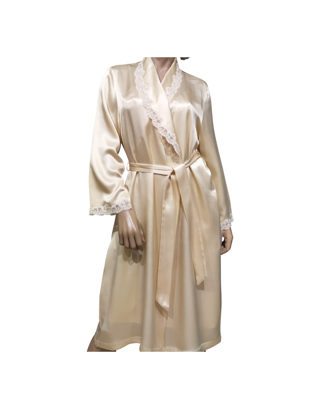 COMPLETO LINGERIE VESTAGLIA E SOTTOVESTE IN PURA SETA CON PIZZO