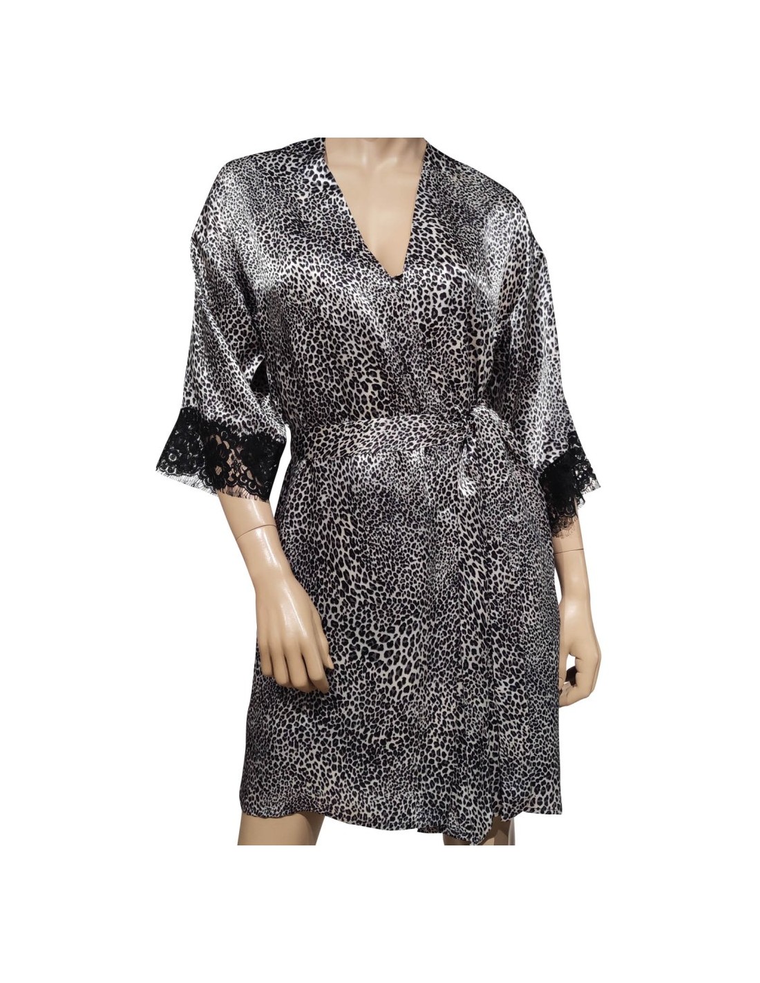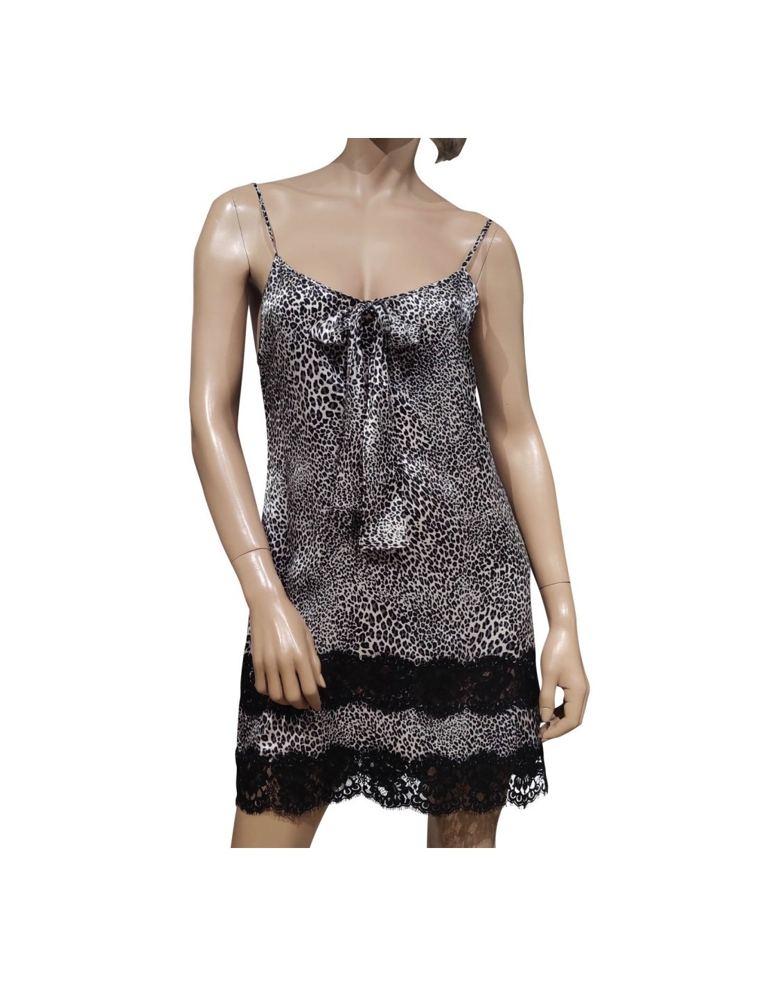 Completo lingerie da donna fantasia maculata, in pura Seta rifinita con