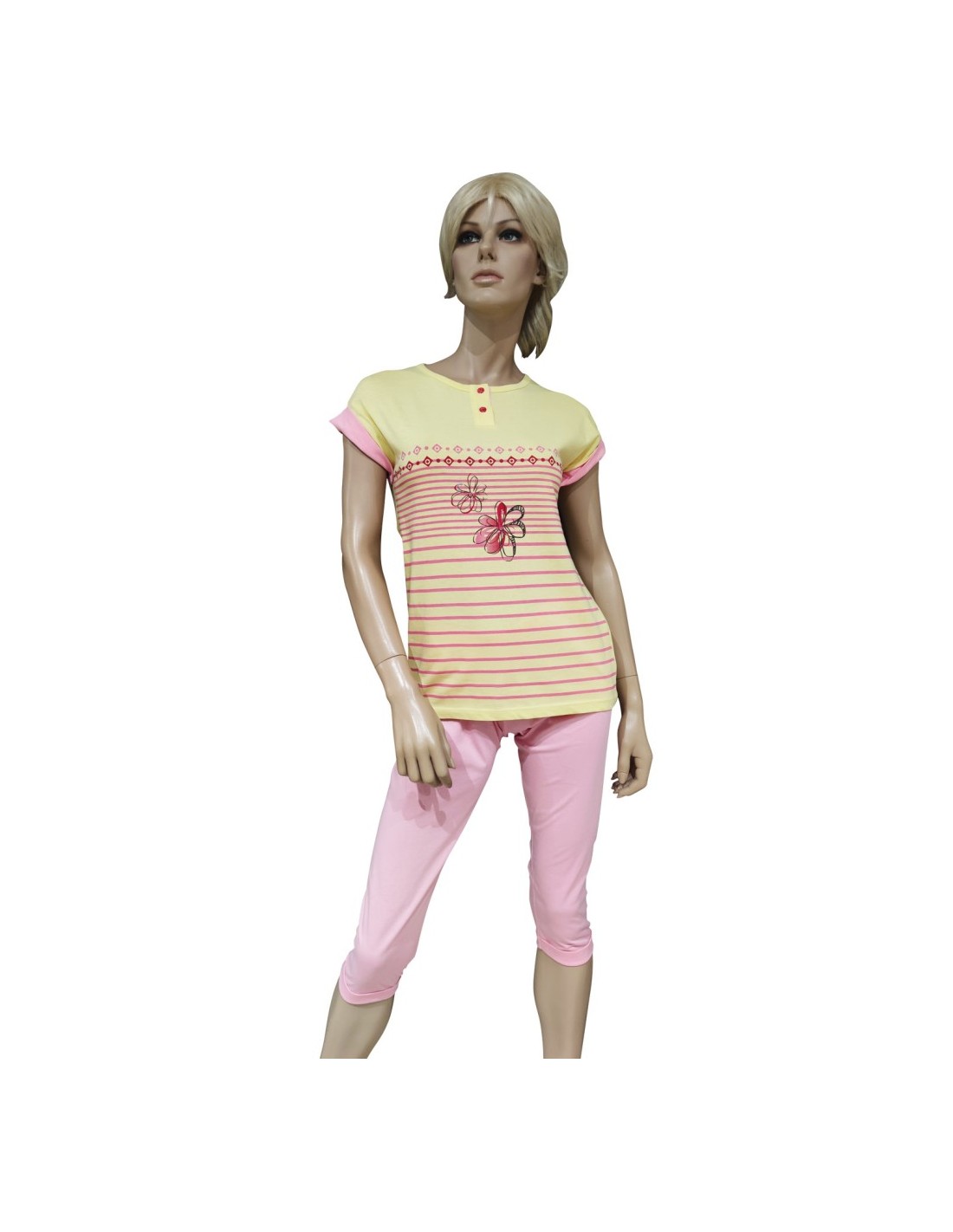 PIGIAMA DONNA ESTIVO MANICA CORTA E PANTALONE PINOCCHIETTO 100% COTONE