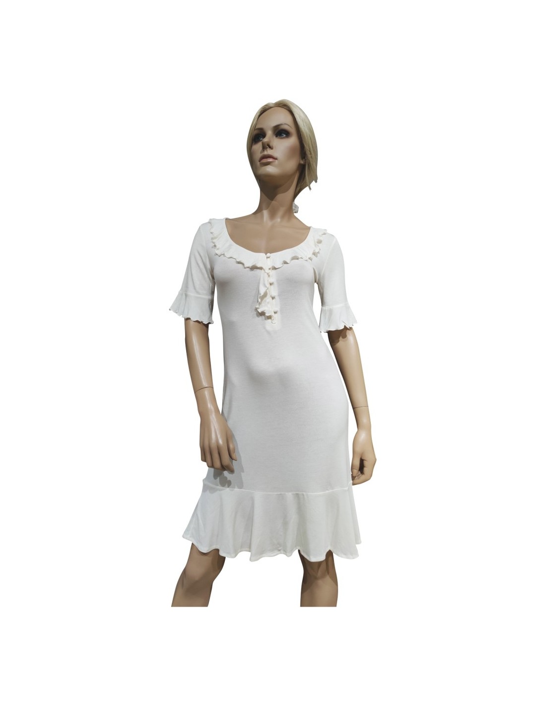 Camicia da notte Donna estiva in Micromodal, collo a serafino 5 bottoni e mezza manica.