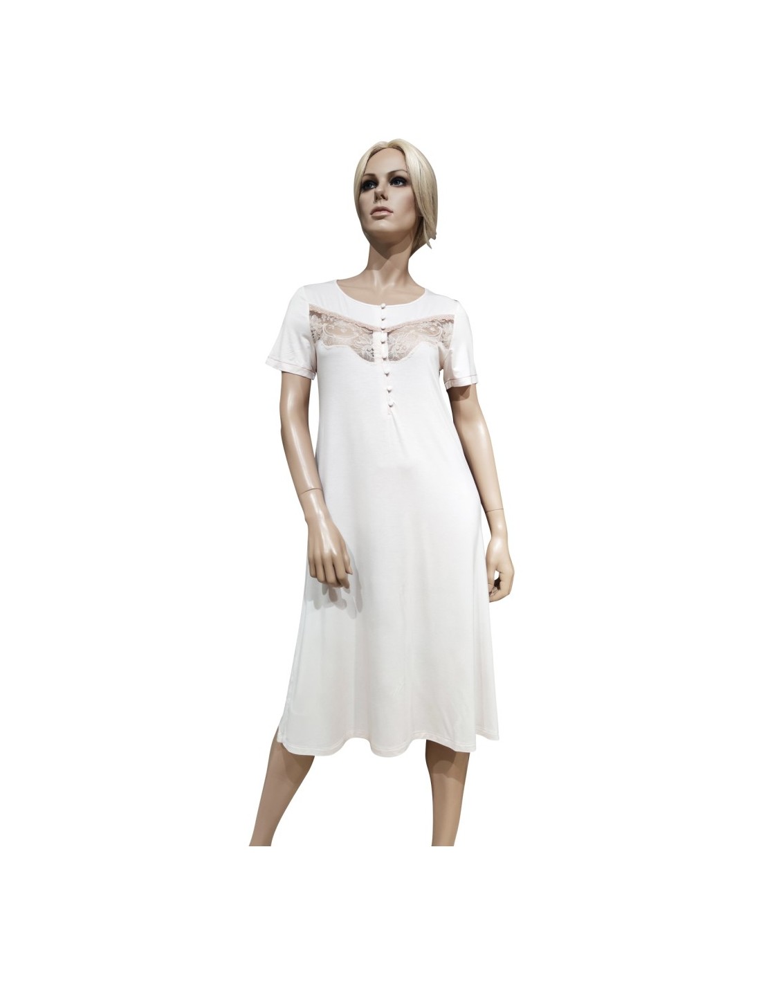 Camicia da notte Donna estiva in viscosa rifinita con inserto di pizzo in