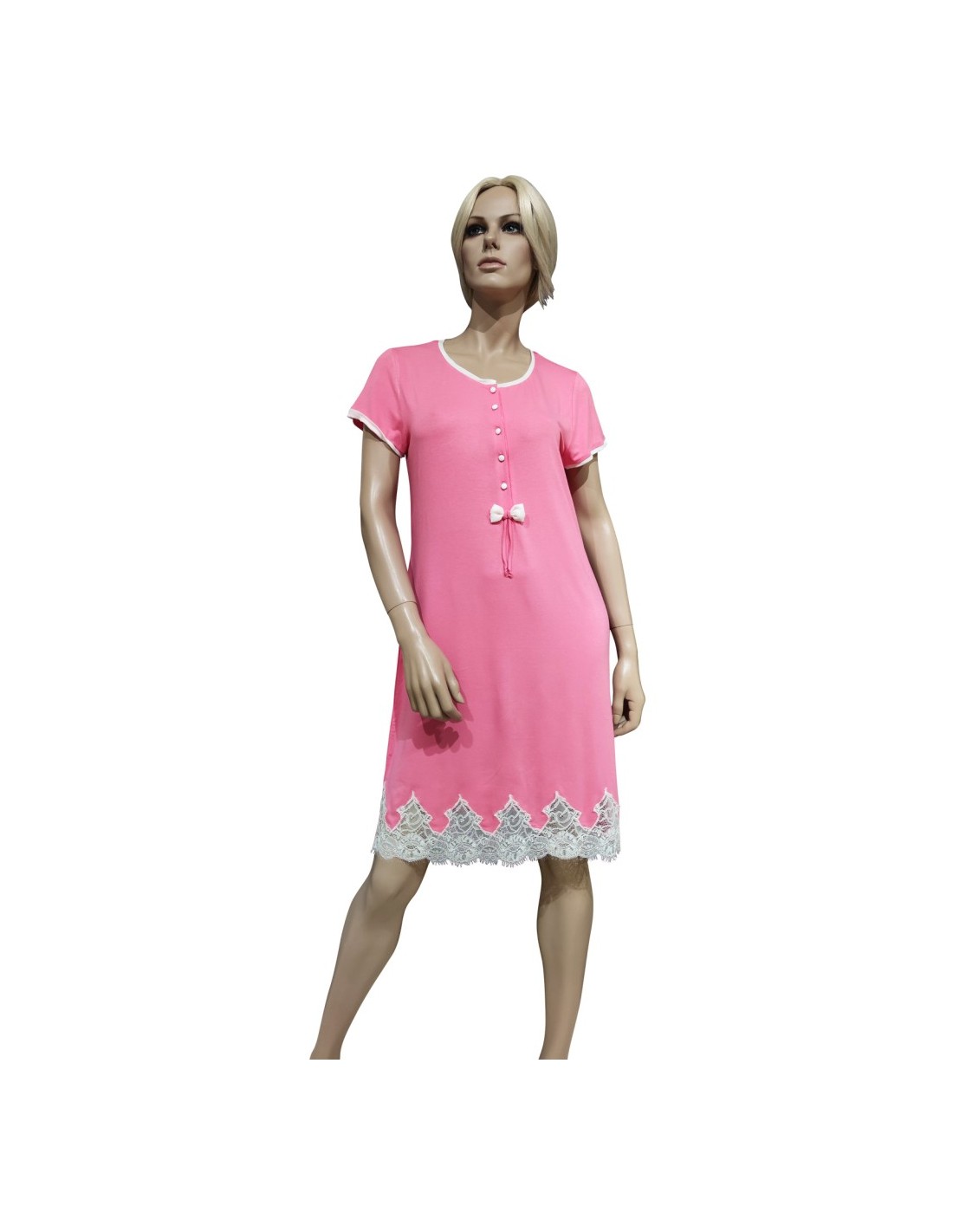 Camicia da notte Donna estiva in viscosa rifinita con pizzo chantilly,
