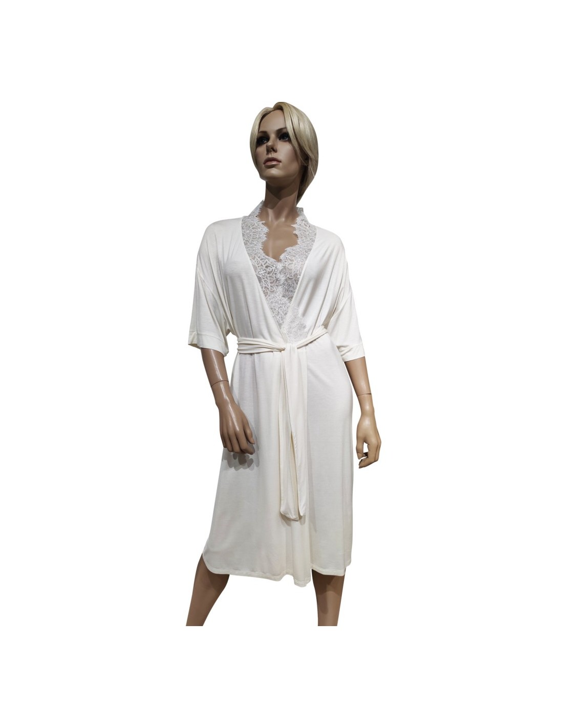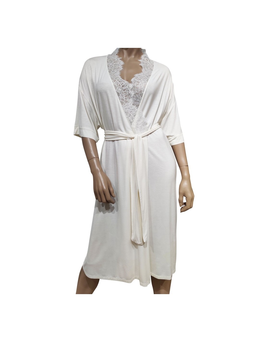 VESTAGLIA DONNA KIMONO ESTIVA IN VISCOSA CON PIZZO
