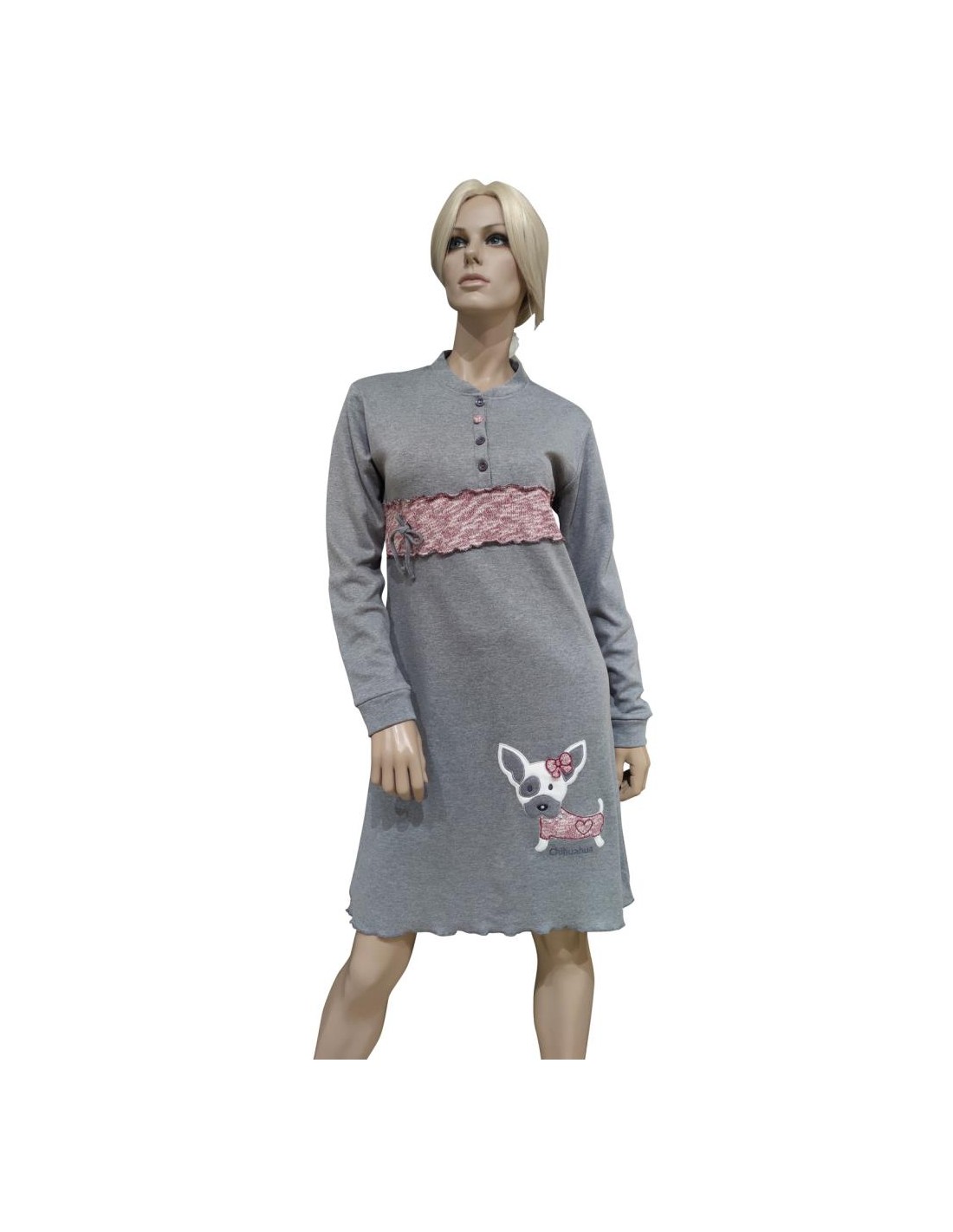 Camicia da notte Donna invernale in tessuto felpato, rifinita con ricamo