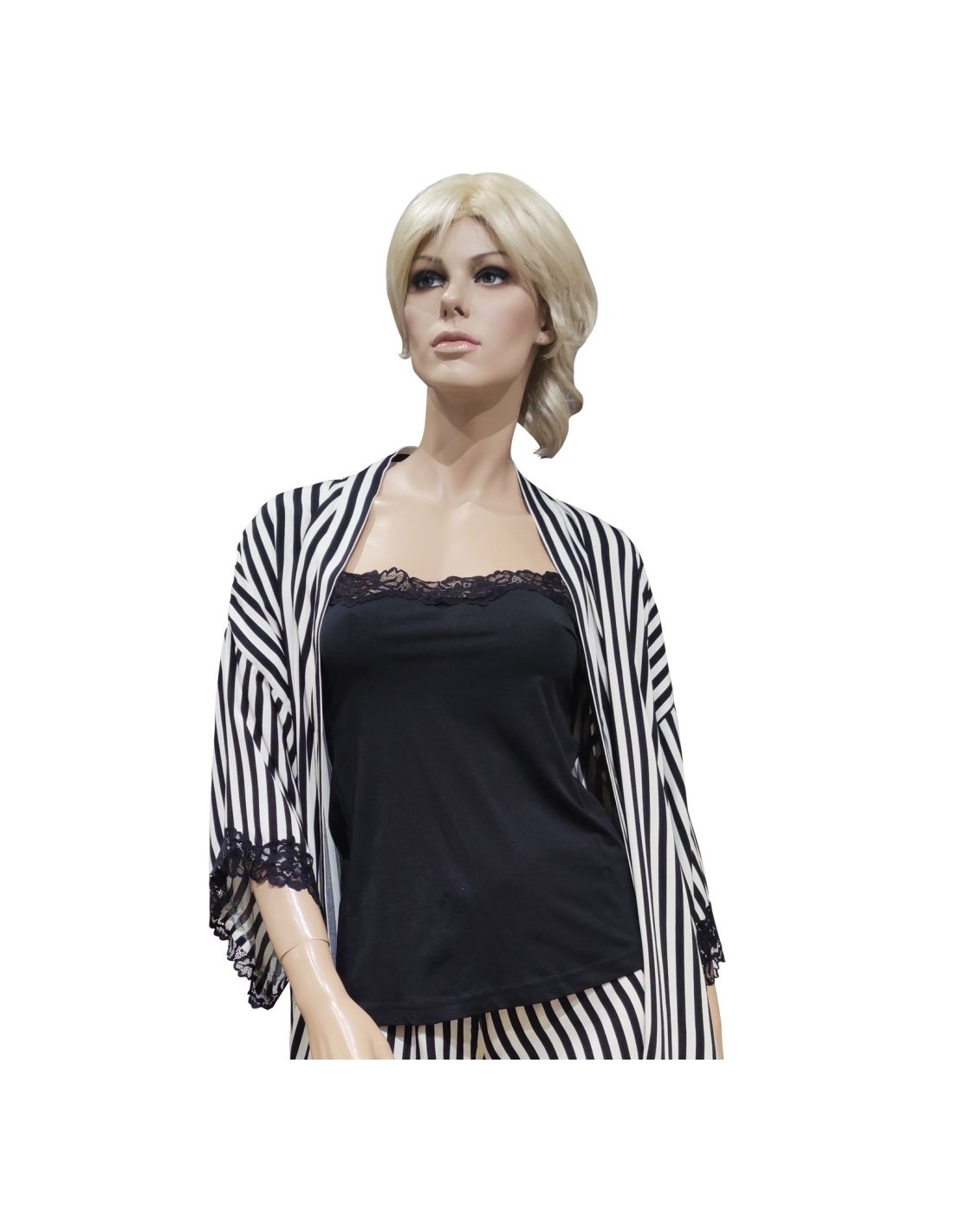 Vestaglia kimono in Viscosa manica 3/4 rifinita con pizzo.