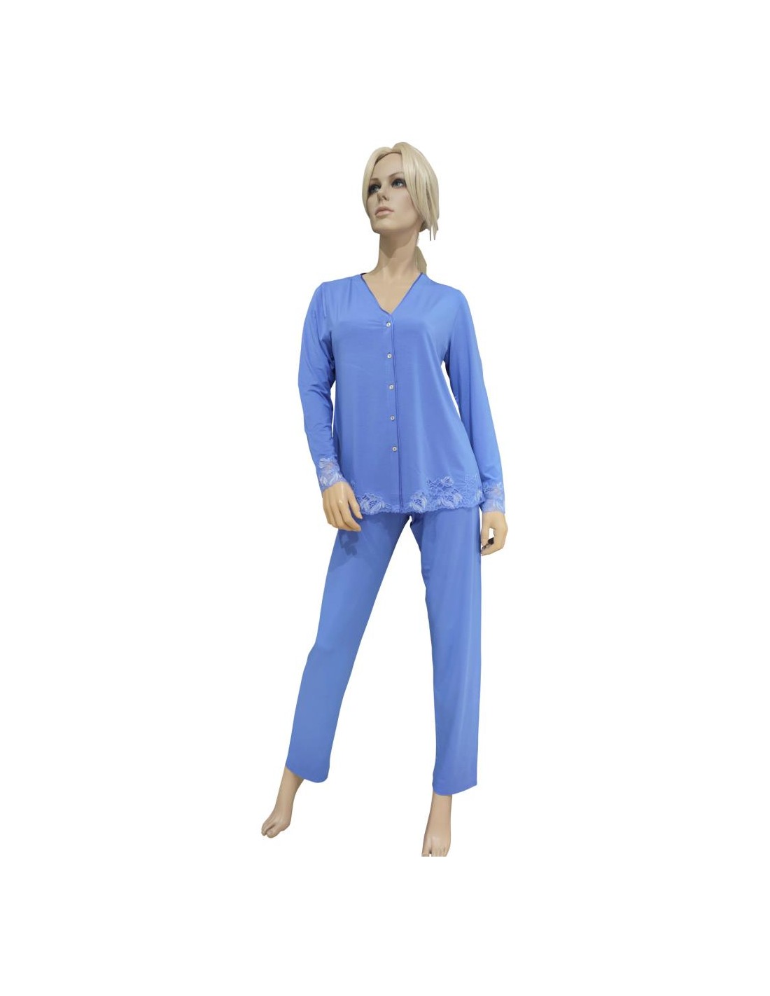 Pigiama donna primaverile in tessuto modale rifinito con pizzo