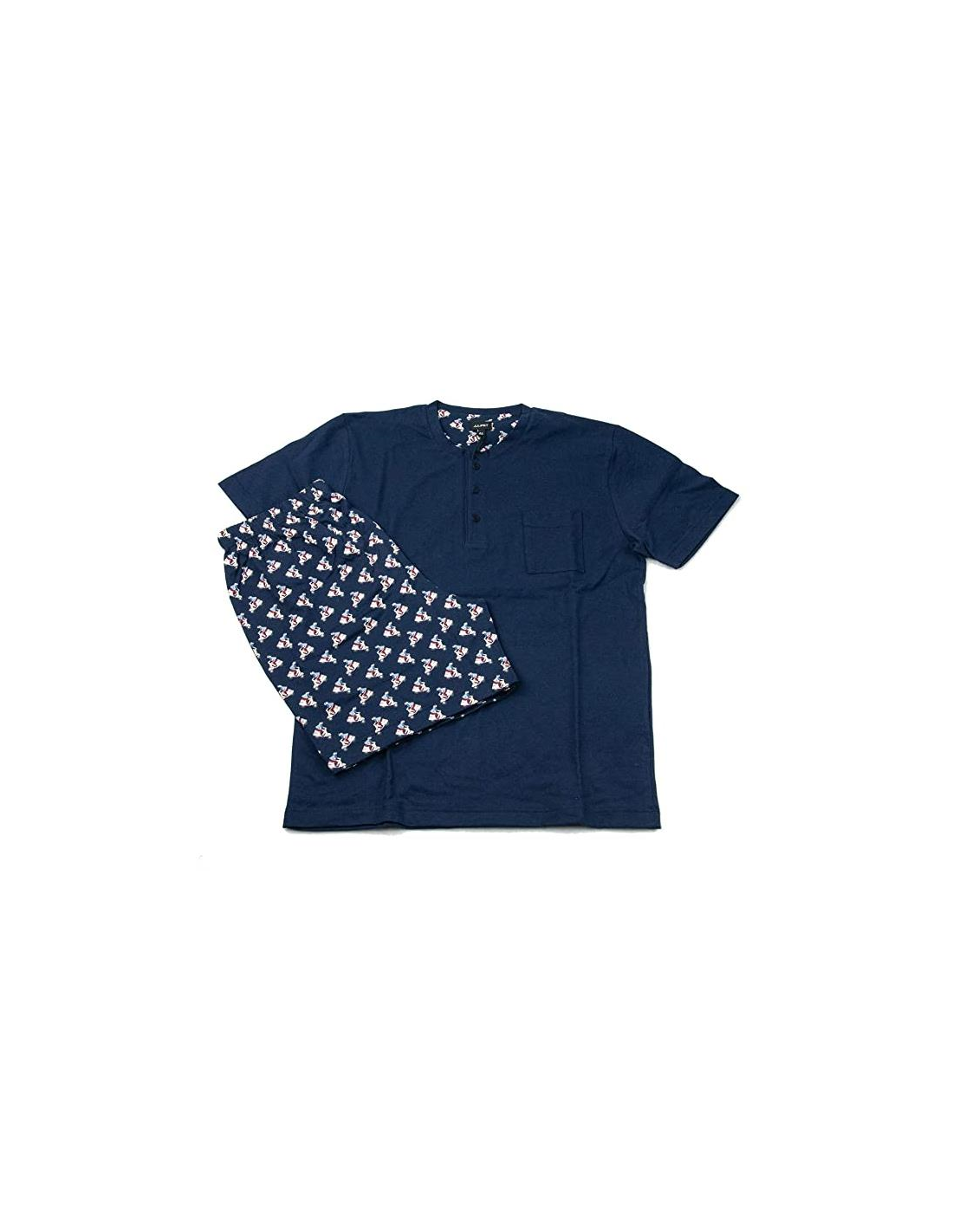Pigiama uomo estivo in leggero cotone jersey. Maglia tinta