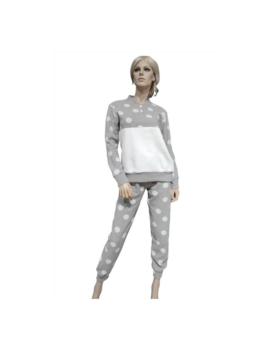 Pigiama donna invernale lungo in caldo punto milano fantasia pois.