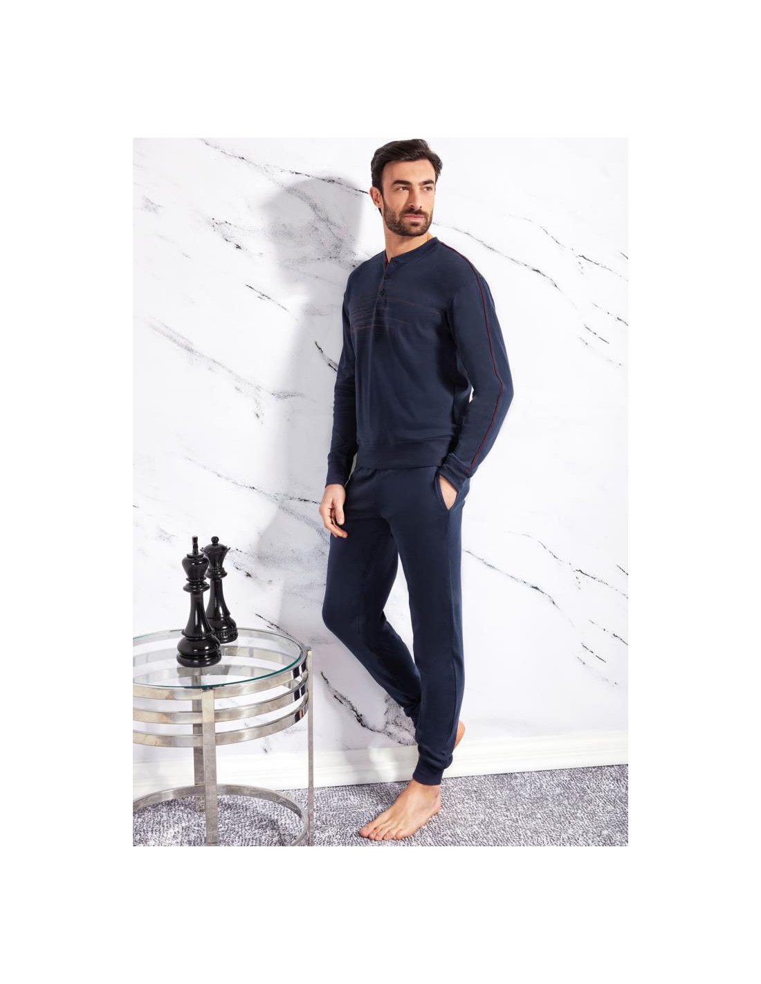 Pigiama uomo invernale lungo in caldo Cotone Interlock.
