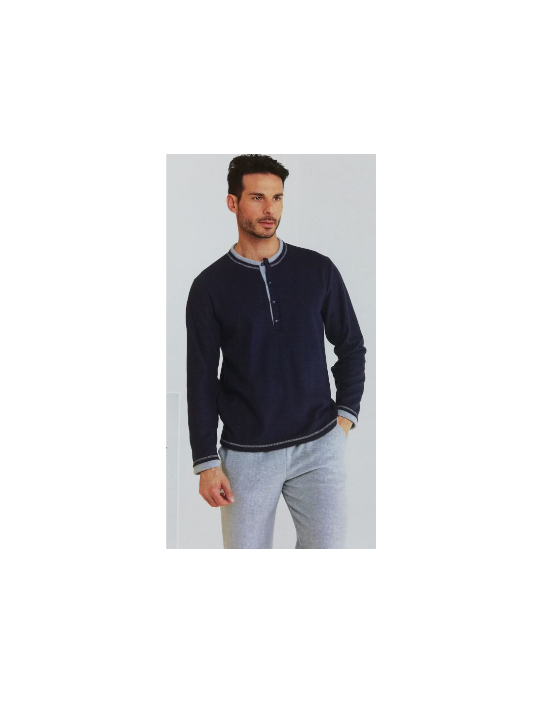 Maglia collo a serafino 4 bottoni e manica lunga con polsini.