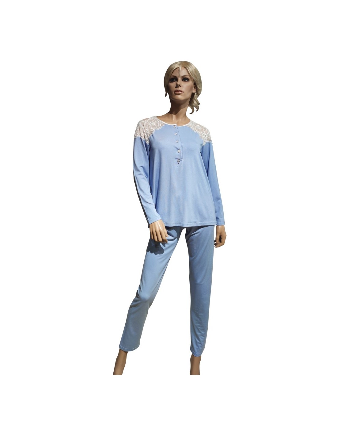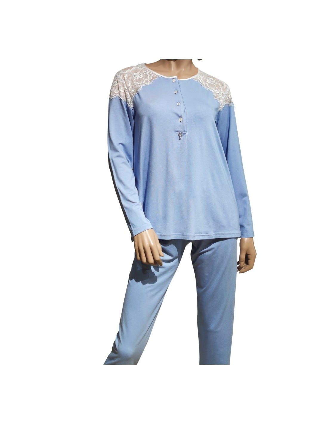 Pigiama donna primaverile in viscosa rifinita con inserti in pizzo.