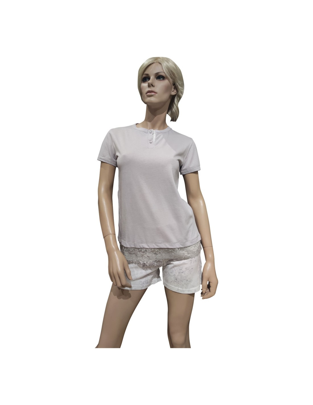 Pigiama donna estivo in puro Cotone rifinito con pizzo.