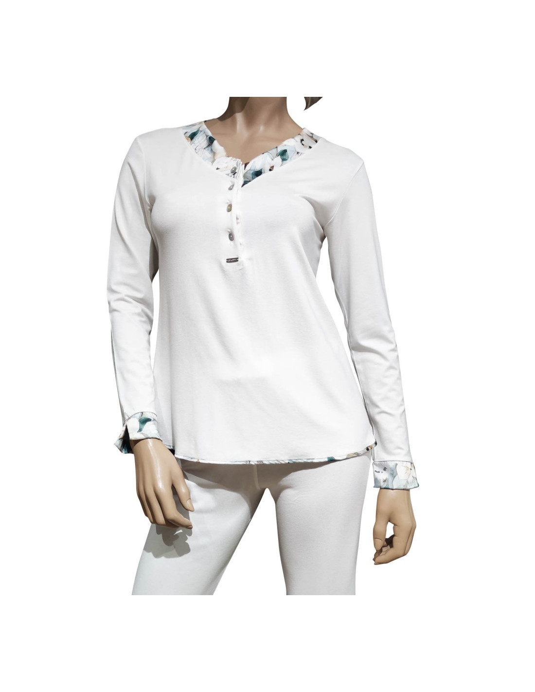 Top a serafino 4 bottoni, manica lunga e pantalone lungo tinta unita.