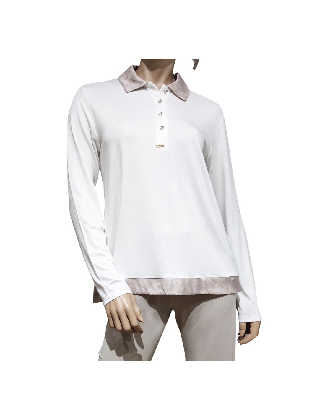 Top a serafino 4 bottoni, manica lunga e pantalone lungo tinta unita.