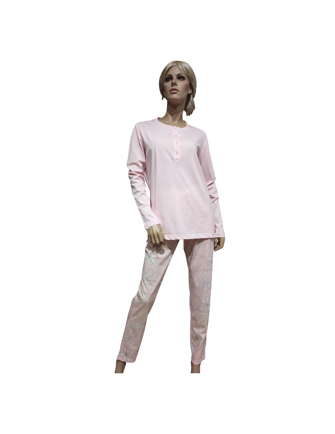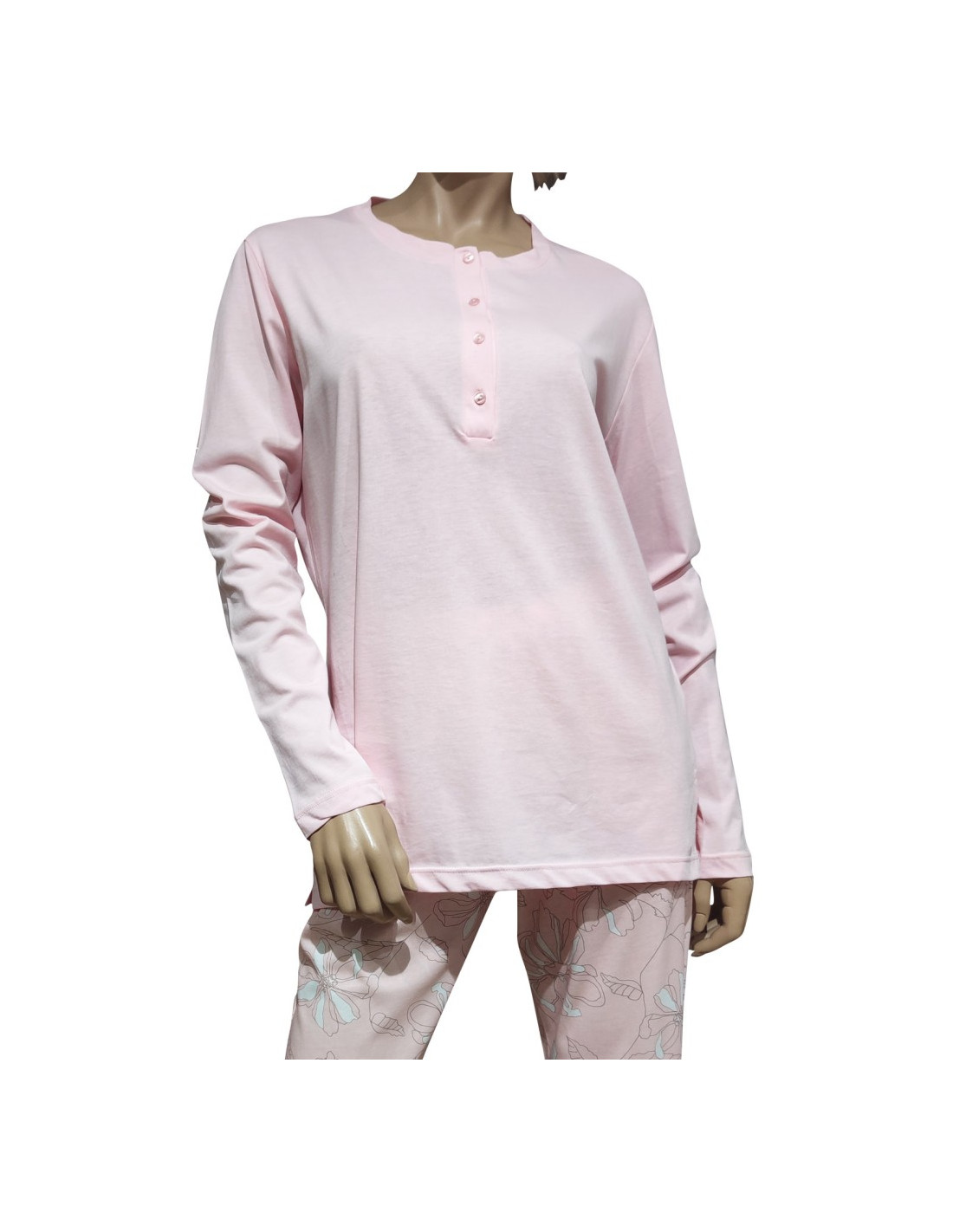 Top a serafino 4 bottoni, manica lunga e pantalone lungo fantasia floreale.