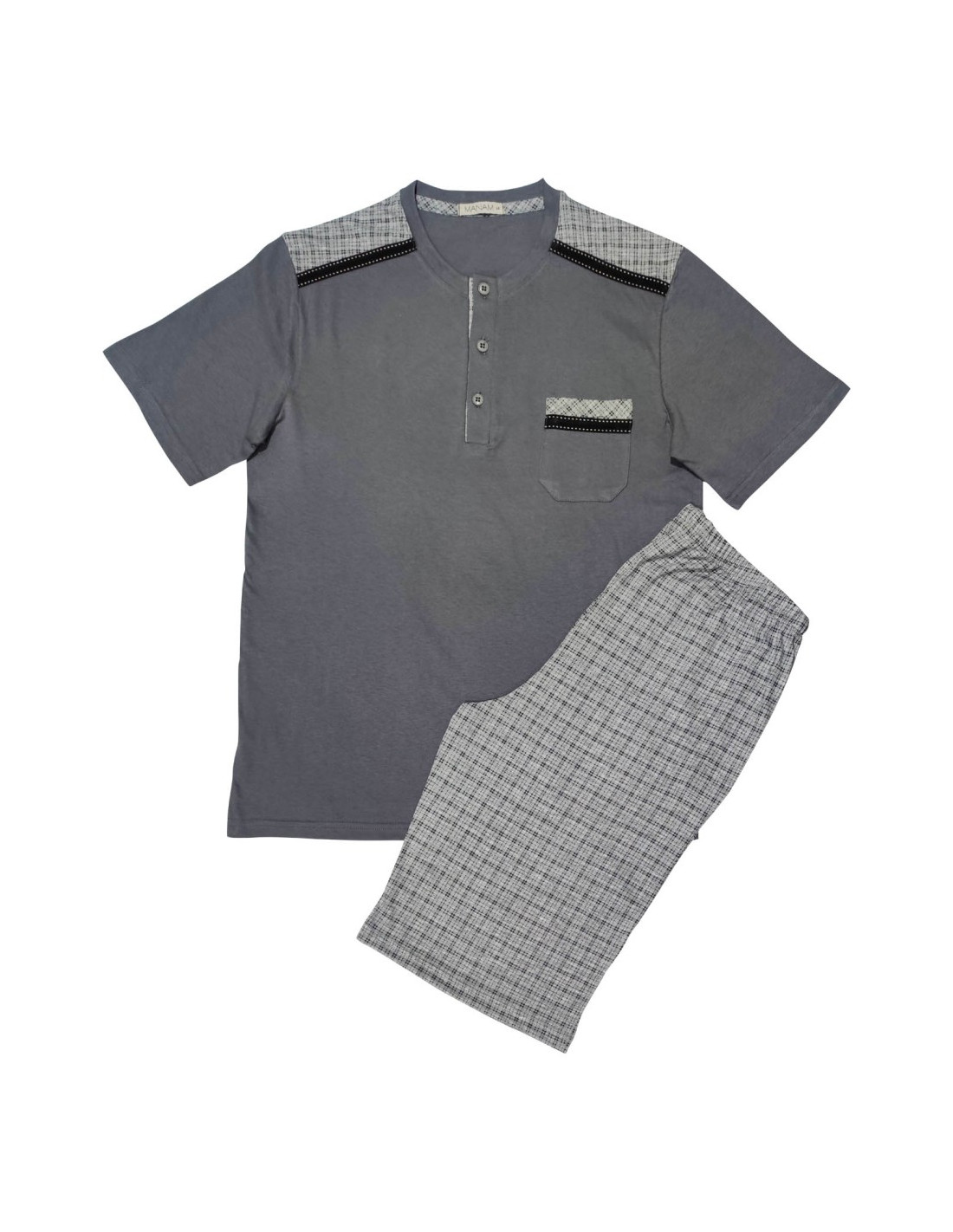 MANAM PIGIAMA UOMO SERAFINO MEZZA MANICA E BERMUDA IN COTONE