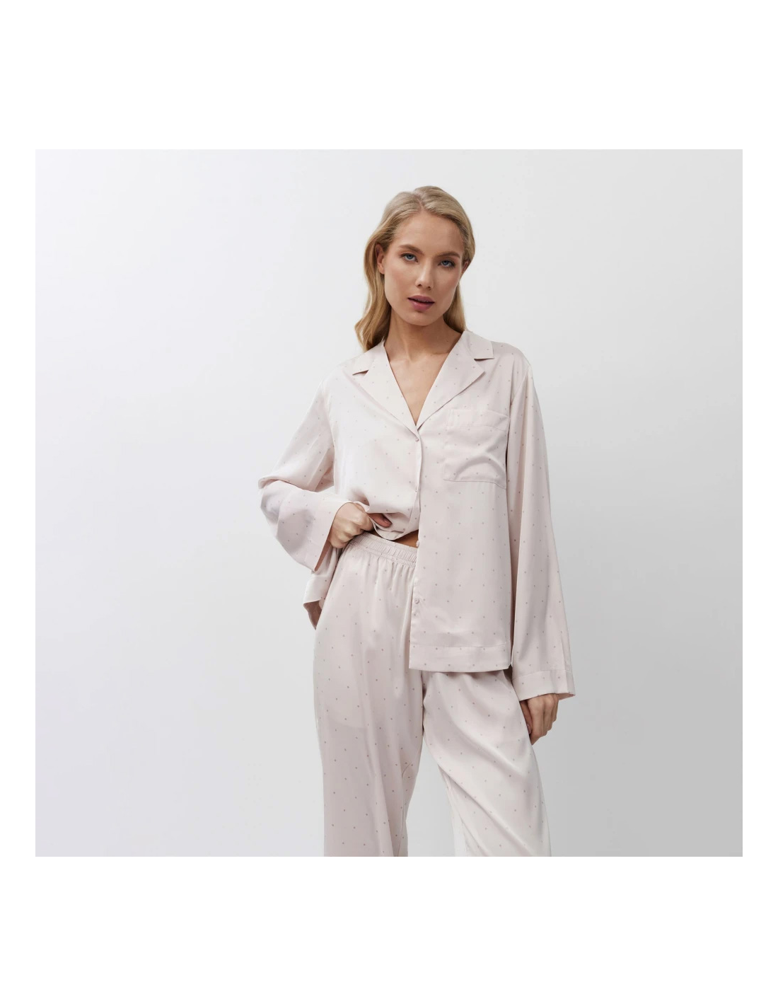 pigiama presenta un elegante stile androgino con una maglia abbottonata e un