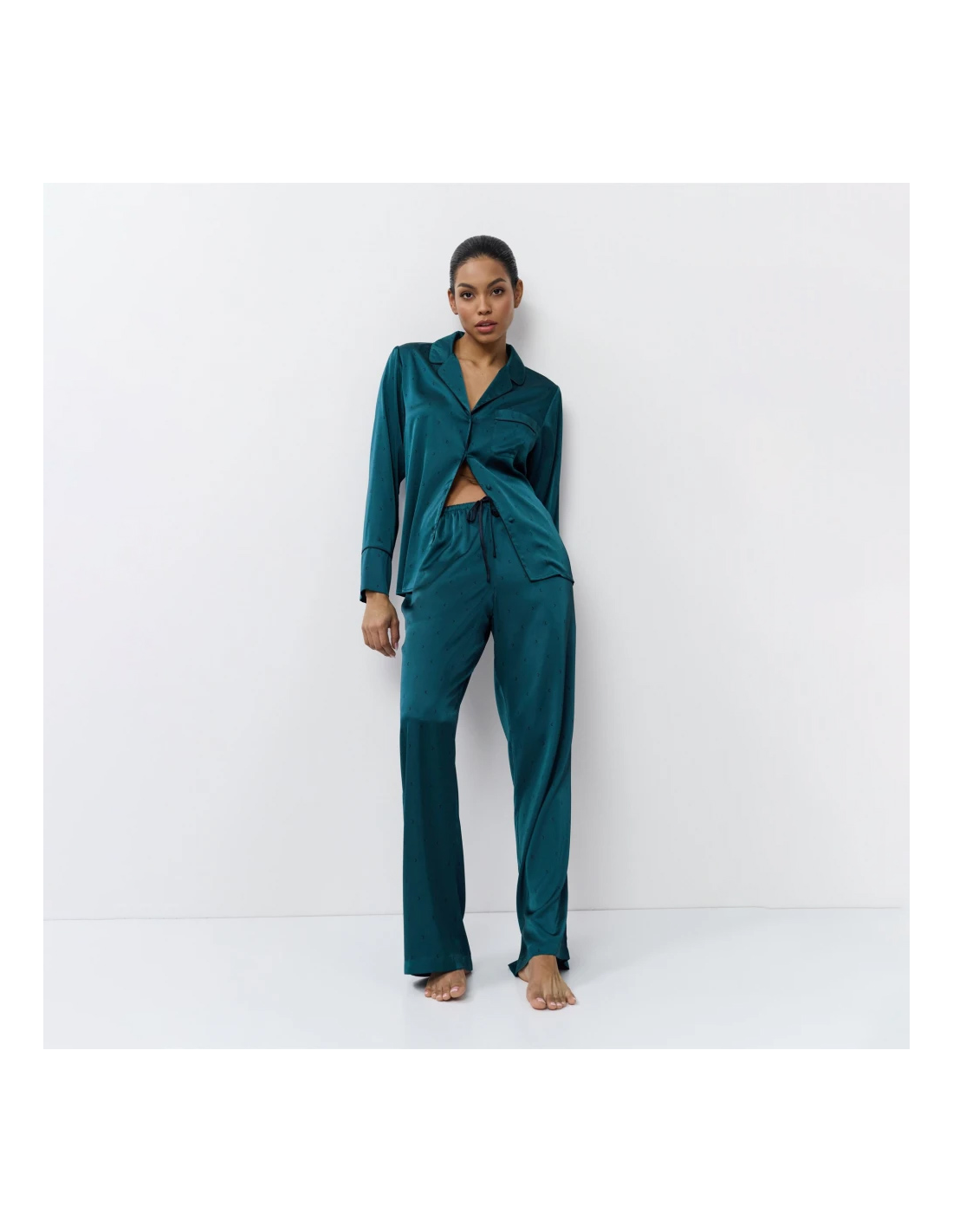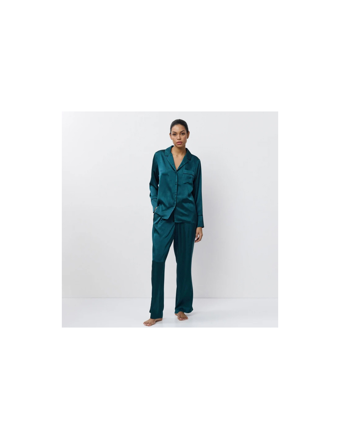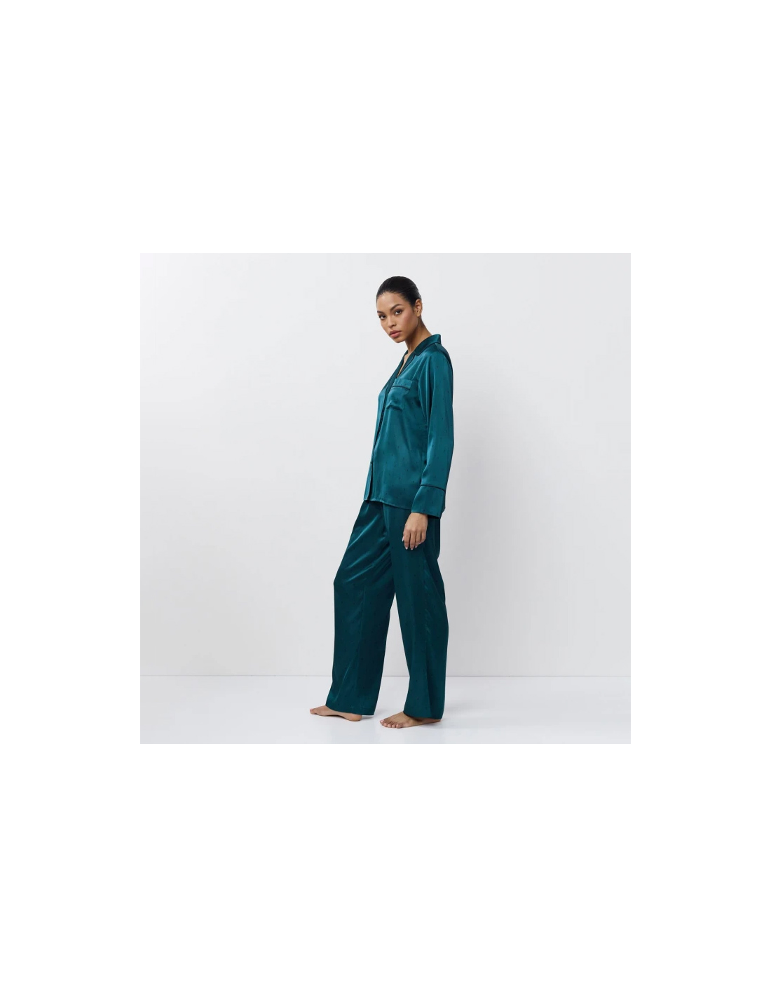 in raso di qualità eccezionale, il pigiama Emeralda offre una sensazione