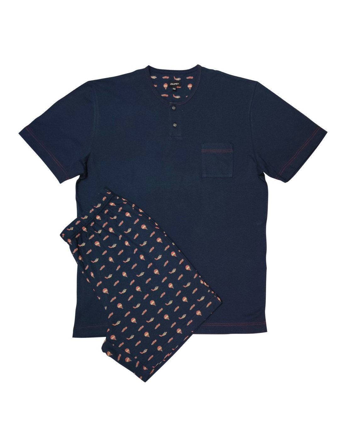 Pigiama uomo estivo in leggero cotone jersey. Maglia tinta