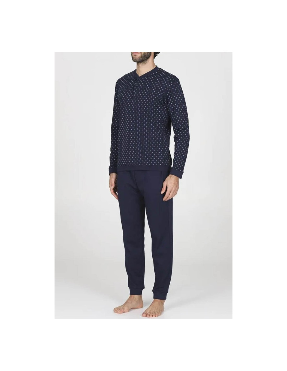 Pigiama uomo a serafino 3 bottoni, in caldo