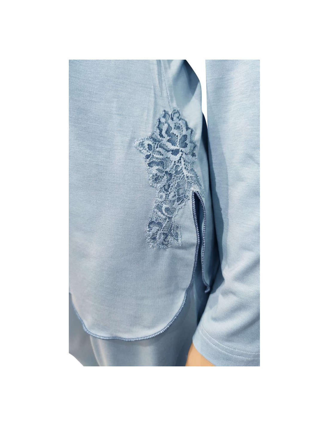 Pigiama donna primaverile in tessuto modale rifinito con pizzo leavers e inserti in pura Seta.