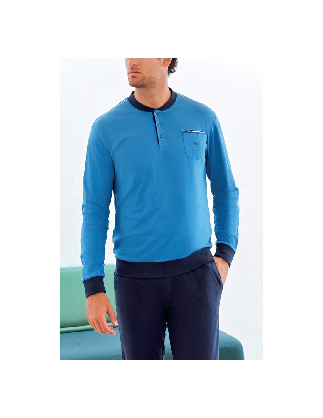 QBO PIGIAMA UOMO SERAFINO MANICA LUNGA E PANTALONE LUNGO 100% COTONE JERSEY