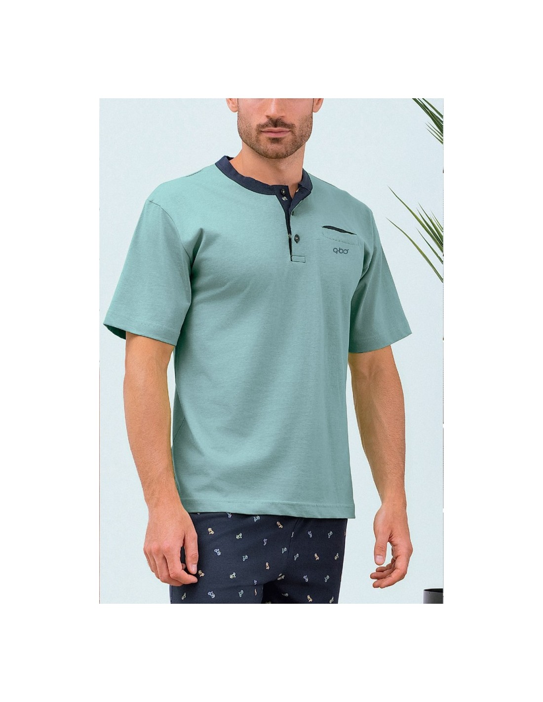 QBO PIGIAMA UOMO SERAFINO, MEZZA MANICA E PANTALONE CORTO 100% COTONE JERSEY